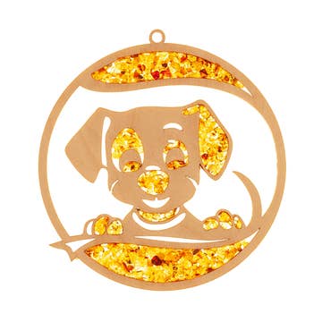 Suncatcher amber in birch wood — dog