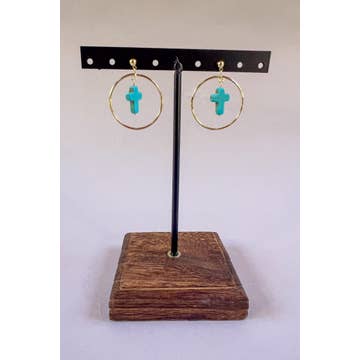 Small Teardrop Earrings: Brown w/Cross Charm