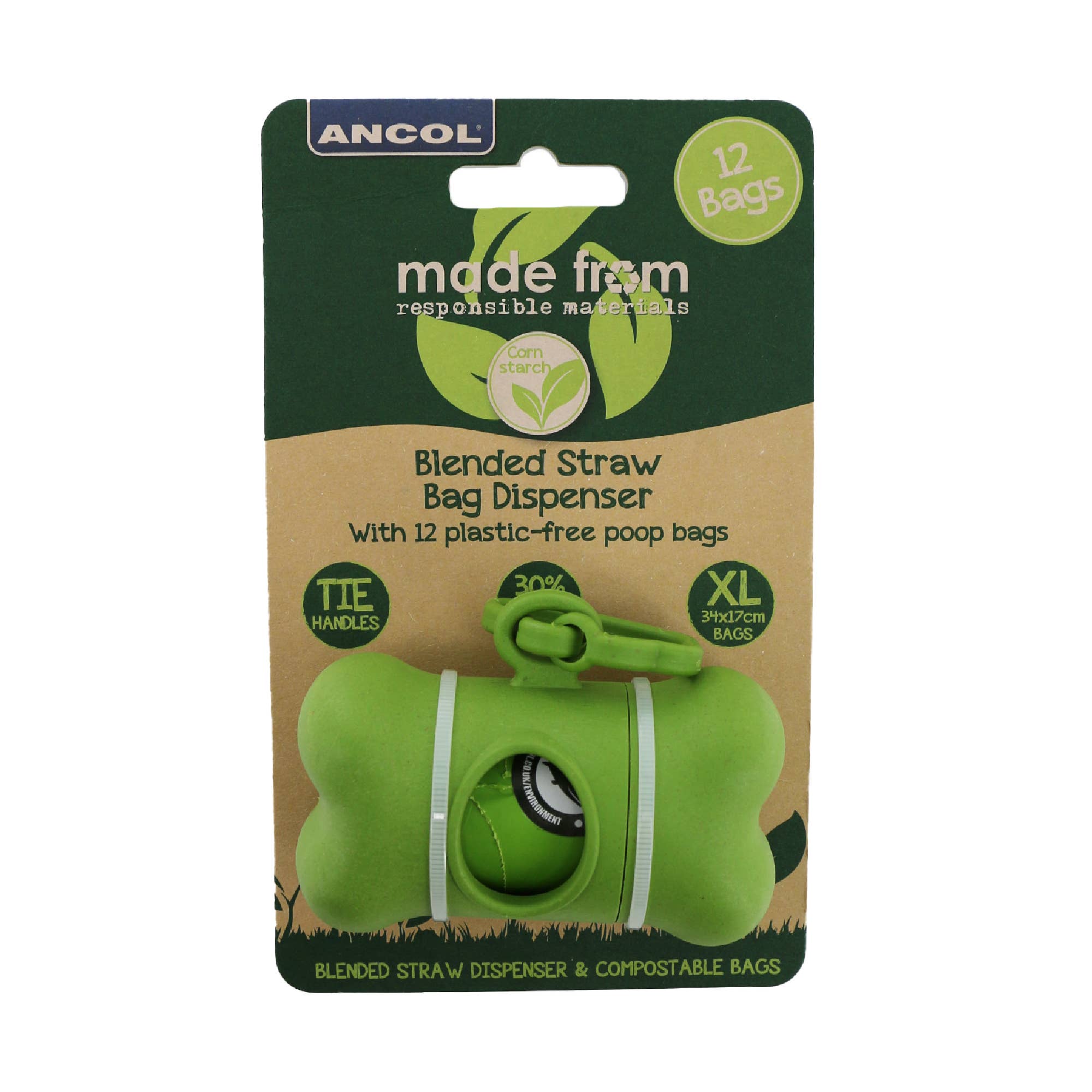 177900 - The Made From poop torch and dispenser is a must have for late night or early morning walks. The bright LED light is great for locating your dog and their poop, while the dispensing handle allows quick and easy clean up. This torch contains 12 strong and degradable poop bags that contain a special additive called EPI. This converts plastic into a degradable material and means that these bags will break down over time if they are left outside exposed to oxygen, leaving only biomass, CO2 and water. This product partners with the Ancol refills which are also degradable and fit the torch perfectly. 11cm