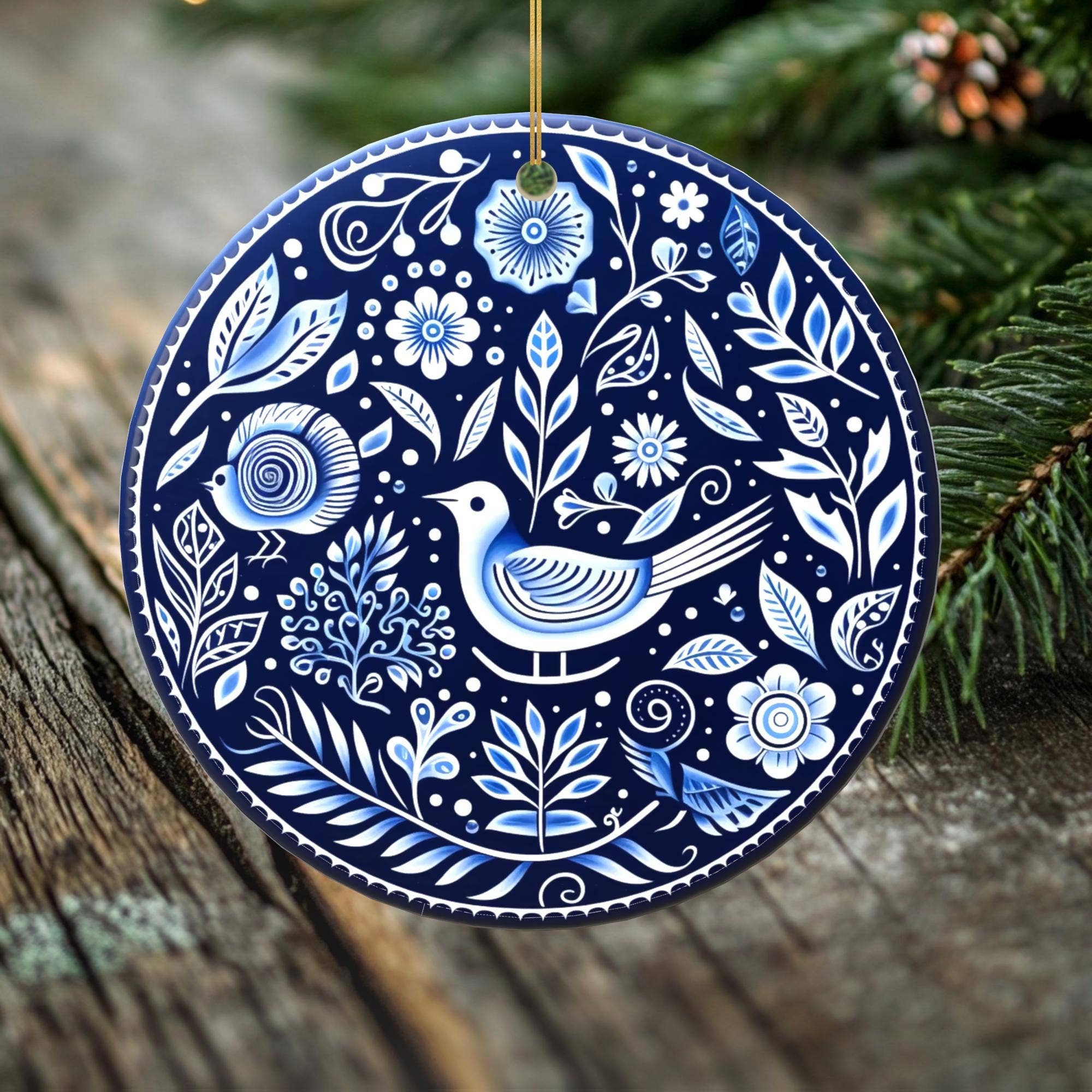 Bring a touch of woodland magic to your holiday decor with this beautiful porcelain Christmas ornament featuring an elegant fox surrounded by nature’s beauty. This original design by Tad Hartmann is carefully printed on both sides of the ornament and finished with a combination of matte and gloss to create an heirloom-quality look. Measuring nearly 3 inches in diameter, this ornament makes a delightful addition to your Christmas tree and a perfect gift for nature lovers. Its intricate details and timeless charm make it a treasured keepsake for the holiday season Size: --Round, almost 3 inch diamater--2.94 inches across --.14 inches thick