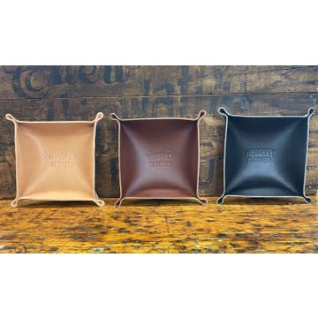 Manready Mercantile Handmade Leather Valet Trays make the perfect catch-all. Excellent on a desk or nightstand to hold accessories such as keys, loose change, trinkets, and more! Each tray is handcrafted right here in Houston, Texas, using American leather. In fact, at Manready Mercantile, we source the best leathers in the world and will never compromise on quality. We proudly use Wicket and Craig leather which is made in Pennsylvania and has been around since 1867. Cut and riveted together by using solid copper hand-hammered rivets. Outside, corner-to-corner: 10.5" Inside, corner-to-corner: 8.5" Height: 2" Comes in Light Brown, Dark Brown, and Black. * Photos shown are examples. Each hide we receive & use is subject to slight modifications and imperfections. Each leather item we make is done by hand - we don't think you're looking for something cookie-cutter anyway!