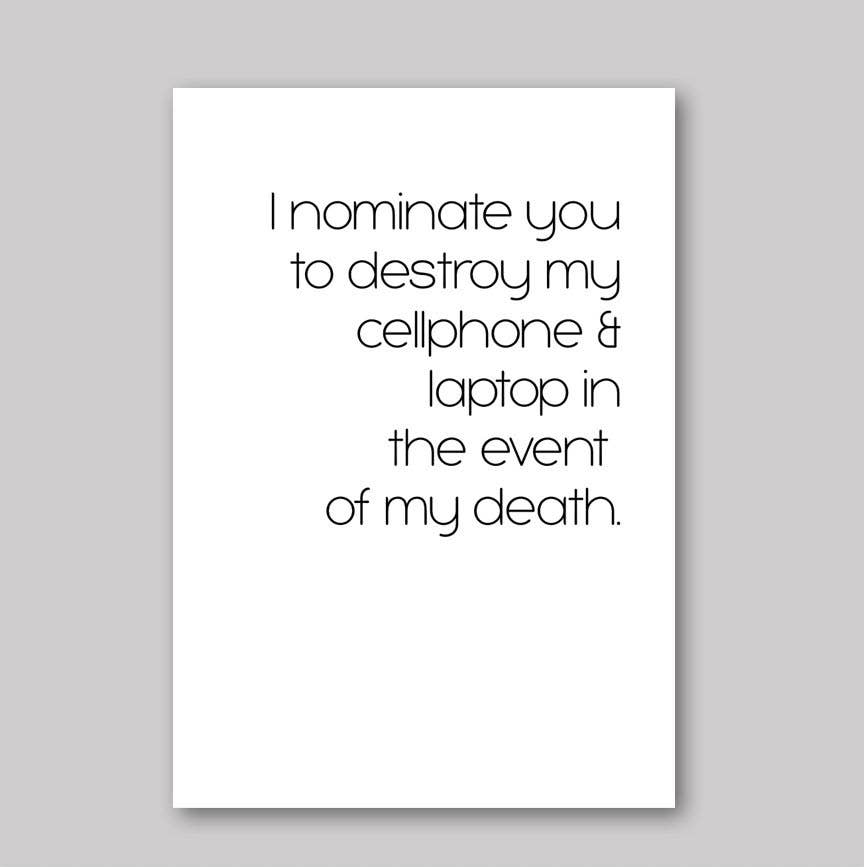 Bright white card 5" x 7" - A7 size. Printed on a heavy card stock. Blank inside for your profound thoughts. Coordinated envelope included. Packaged in a plastic cover sleeve.