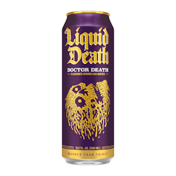Liquid Death Sparkling Mountain Water is a premium sparkling water sourced from the Alps, offering a refreshing, fizzy taste. It comes in eco-friendly, recyclable cans and is marketed with a bold, edgy brand image.