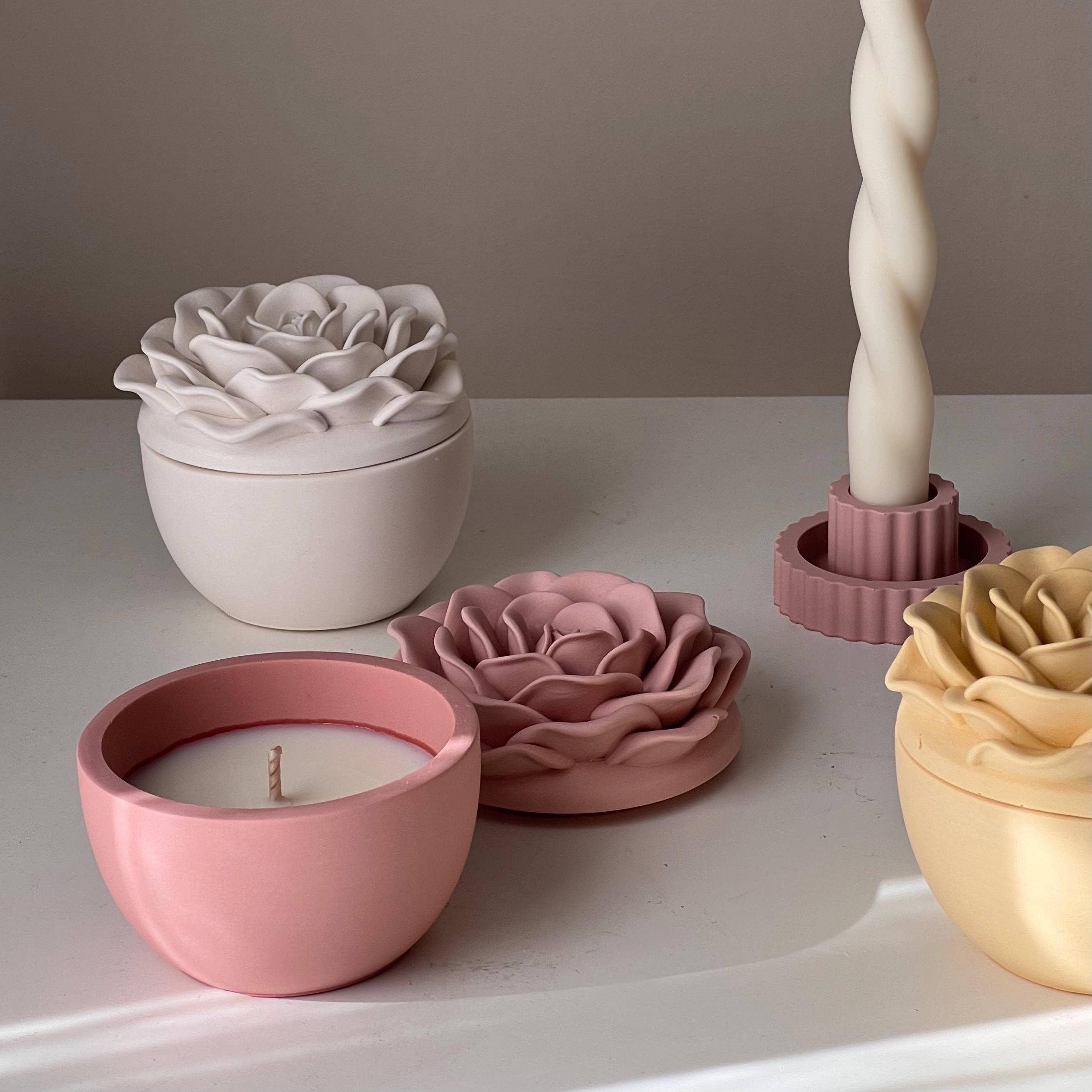 Camelia Flower Jar Soy Wax Candle Dimensions: ✧ Jar: 9cmx4cm ✧ Lid: 9cmx3.5cm Ingredients: soy wax, fragrance oil, wood wick. Net weight: 85g 15+ hours burn if burning instructions are respected. 🕯️ Enhance your environment with the tranquility of our handcrafted candles, blending eco-friendly artisanship with classic style. Every candle exemplifies a commitment to conscious living and thoughtful gifting, meticulously made using eco resin and offered in variety of scents. 🌱 Each of our candles and jars is uniquely handcrafted in our studio, using Jesmonite, non-toxic fragrances and made with natural soy wax blend to ensure a safe burn. 💫 After you've enjoyed your candle, our jars are intentionally designed to serve as versatile items in your home. They can be repurposed to hold your plants, store stationery, organize hair accessories, and much more! 🎁 These aesthetic candles are the beautiful addition to your home decoration, a perfect gift for Valentine's Day, Birthday, Mother's Day, House Warming, Baby Shower, Best Friend, Girl Friend, Wedding, Christmas, and also an adorable self gift. 💌 If you would like to add a personalized message to your orders, please leave a message at checkout. ---------------------------- 🕯️ Usage ✧ Trim the wick every time to 0.5cm and allow the wax to melt evenly across the entire surface. ✧ Allow your candle to burn for a minimum of 2-3 hours during each use. ✧ Always place your candle on a heat-resistant surface and away from drafts, flammable materials, and out of reach of children and pets. Never leave a burning candle unattended. ✧ When extinguishing your candle, use a snuffer or a spoon. ✧ Don’t burn candles completely - extinguish them once 2 cm of wax remain and don't relit. ✧ Store your candles in a cool, dry place, away from direct sunlight, dust and fluorescent light. ✧ Refer to the candles care instructions for additional guidance. ---------------------------- 🌟 Please note ✧ All of our candles are individually hand poured in our studio using sustainable soy blend wax. Due to the handcrafted nature of our vessels, air bubbles or uneven color may be present, however we embrace these as unique characteristics of each piece. ✧ Candles are made to order so please allow up to 3-5 business days for dispatch (excluding shipping times). ✧ It is the customer’s responsibility to ensure the accuracy and safety of the shipping address provided. We will not be held liable for incorrectly entered shipping information or packages left, stolen, or missing from an unreliable or unsafe shipping address. The customer is responsible for paying the cost of re-shipping any packages returned to the sender due to issues with delivery. ---------------------------- If you have any questions or for wholesale inquiries, please send us a direct message.