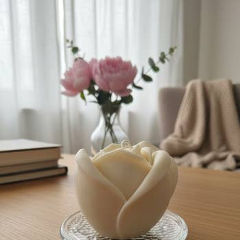 Camelia Flower Soy Wax Candle in Jesmonite Jar: Handmade Scented Candle