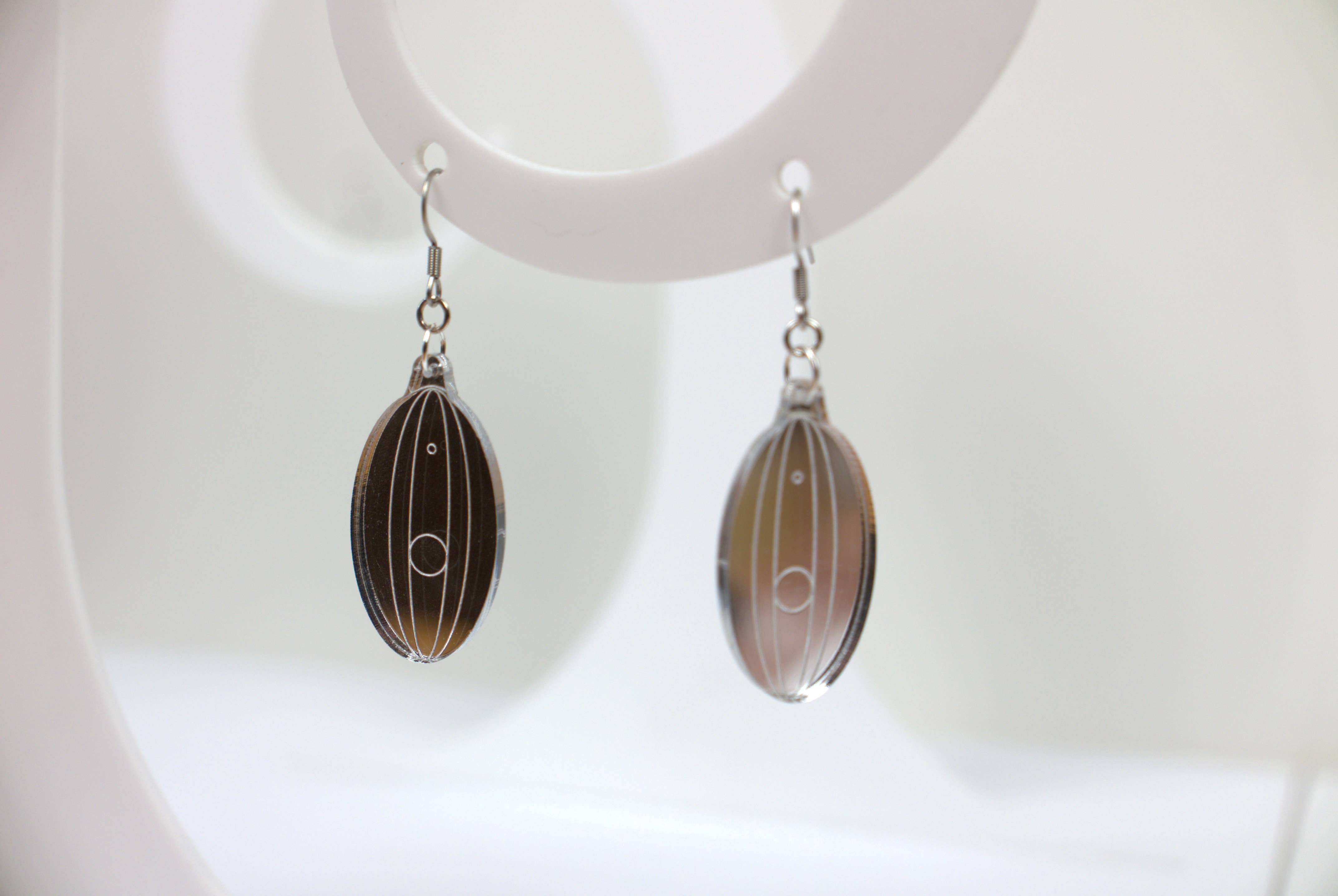 The Saturn earrings are a great way to convey your love for Saturn, planets or the planetary system in general on a night out to the club. Let your inner nerd shine while you're out dancing! These earrings are weird and wonderful and are made out of fluorescent blue acrylic. The earring finding is made out of stainless steel, a hypoallergenic and durable alloy. The earrings are handmade and laser cut in our workshop in Holland, using acrylic that is 100% pre and post consumer recycled.