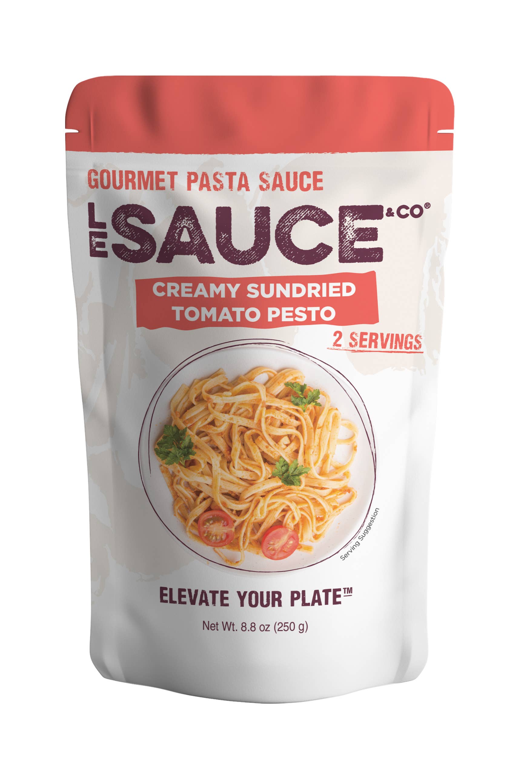 90% of consumers are throwing out a partially used jar of pasta sauce. That is why we created a 2 serving size package of gourmet pasta sauce so shoppers can always enjoy fresh sauce every single time. A lite, fresh-flavored sauce that goes with almost anything. First smells: Sweet tomato, basil, and a hint of garlic. First taste: Tastes like it smells, Italian tomatoes with the perfect complement of basil and garlic. Try with cheese tortellini and grilled chicken, or orecchiette pasta, fresh spinach, and shrimp. Create a gourmet meal with a Le Sauce & Co. Tomato Basil Gourmet Pasta Sauce. It's made with high quality ingredients and spices like imported italian san marzano tomatoes, olive oil, basil, onion, garlic and paprika, creating a delicious pasta sauce for the whole family. We love this pasta sauce because of the depth of its flavor. *All Le Sauce & Co. products are Gluten Free