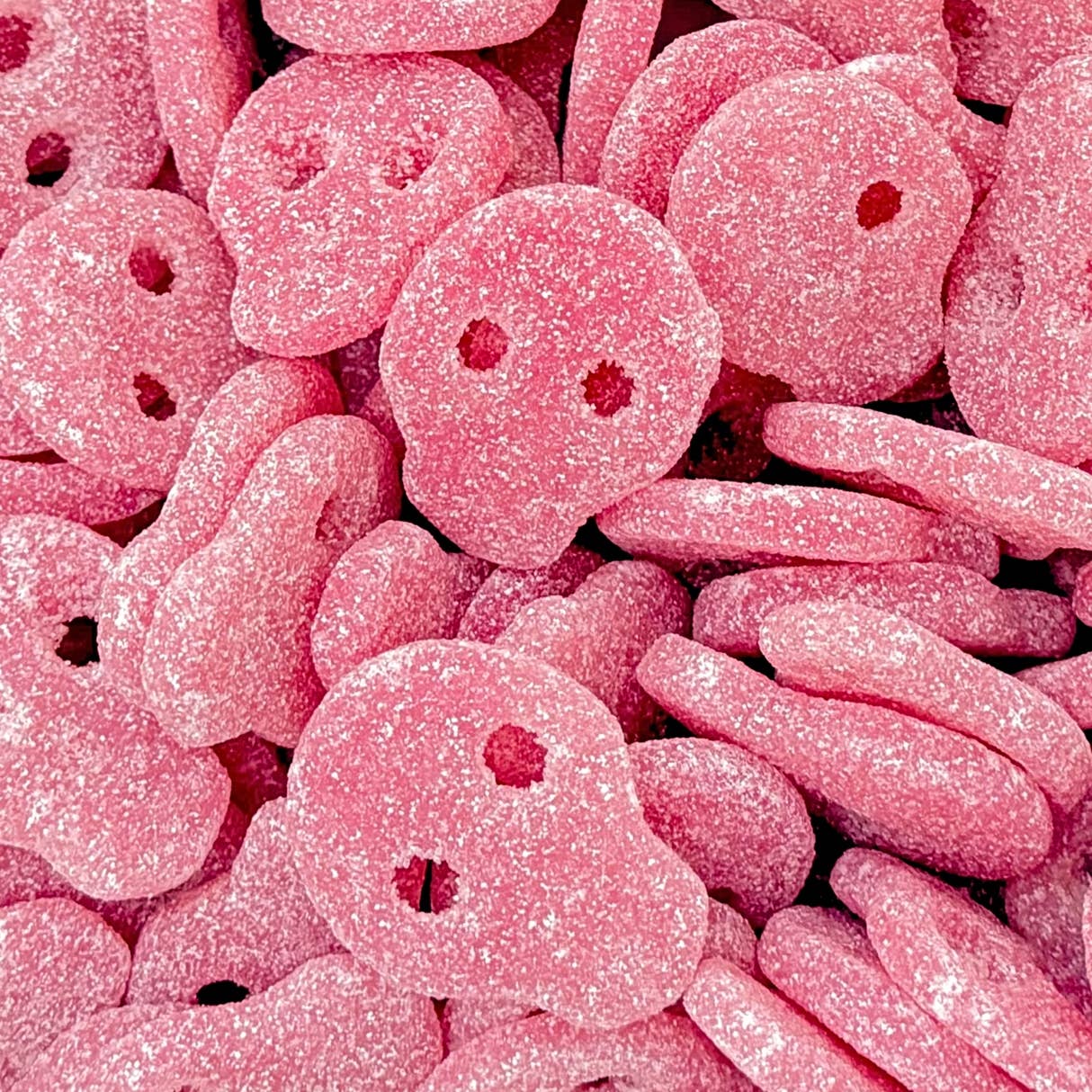 Sour Pinky Skulls Swedish Candy. Sour gummy, chewy texture. Free of High Fructose Corn Syrup Free of GMOs Free of Trans Fats ALLERGIES Wheat, milk, sulfites