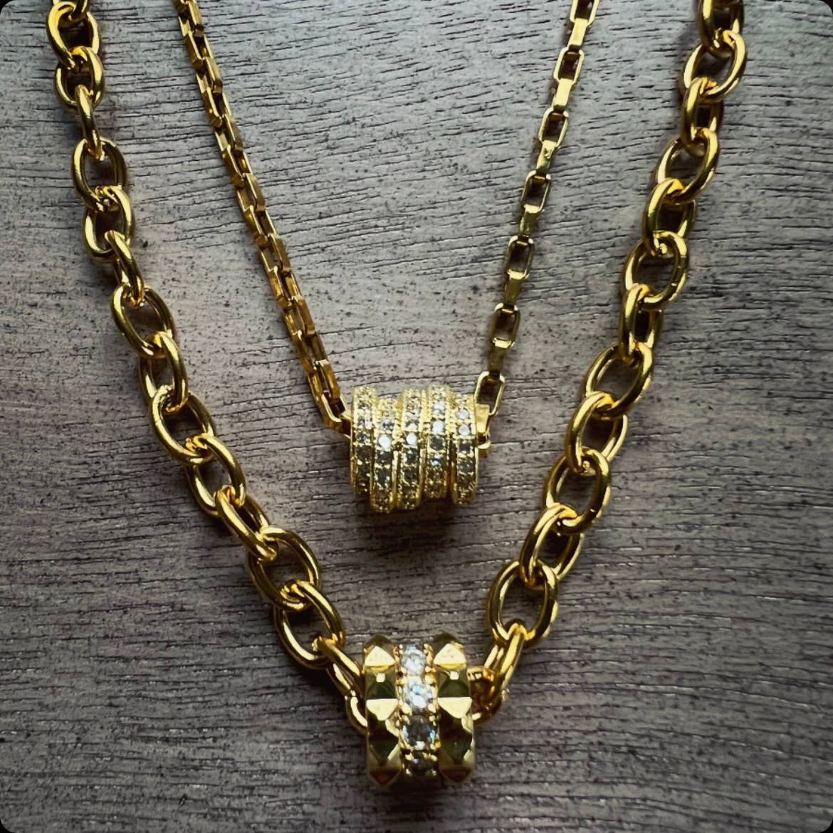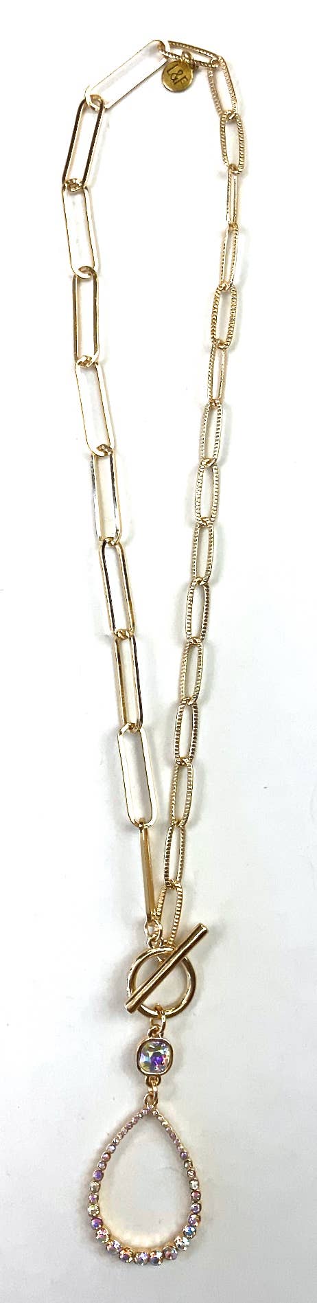Gorgeous pave toggle necklace with a heavy stainless steel oval textured chain plated in silver or gold. This chain comes in your choice of 16 or18 inch lengths and two colors, gold or silver. Chain is 8x13mm ovals. Perfect alone or layered, to a wedding or with jeans! *Toggle pendant 1” long and both toggle and ring may vary based on availability.