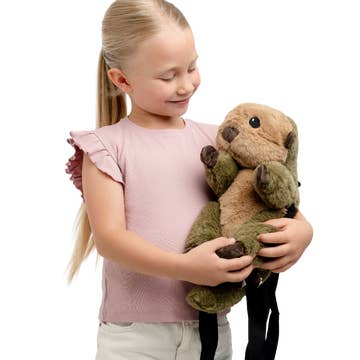 Nothing is better than a bear hug! This spacious zipper backpack doubles as an interactive toy and life skills trainer. Colorful buckles, snaps, and buttons cross Billy Bear’s sides for tactile entertainment. Hidden on his belly, kids can practice tying laces and telling time with clock hands that really turn and click. Features • 8 child-friendly buckles and snaps • Shoe laces and button • Practice clock with embroidered numbers • Zipper pocket. Sized to fit a small tablet or ipad mini • Size 13" x 8"; 13 ounces; Adjustable straps