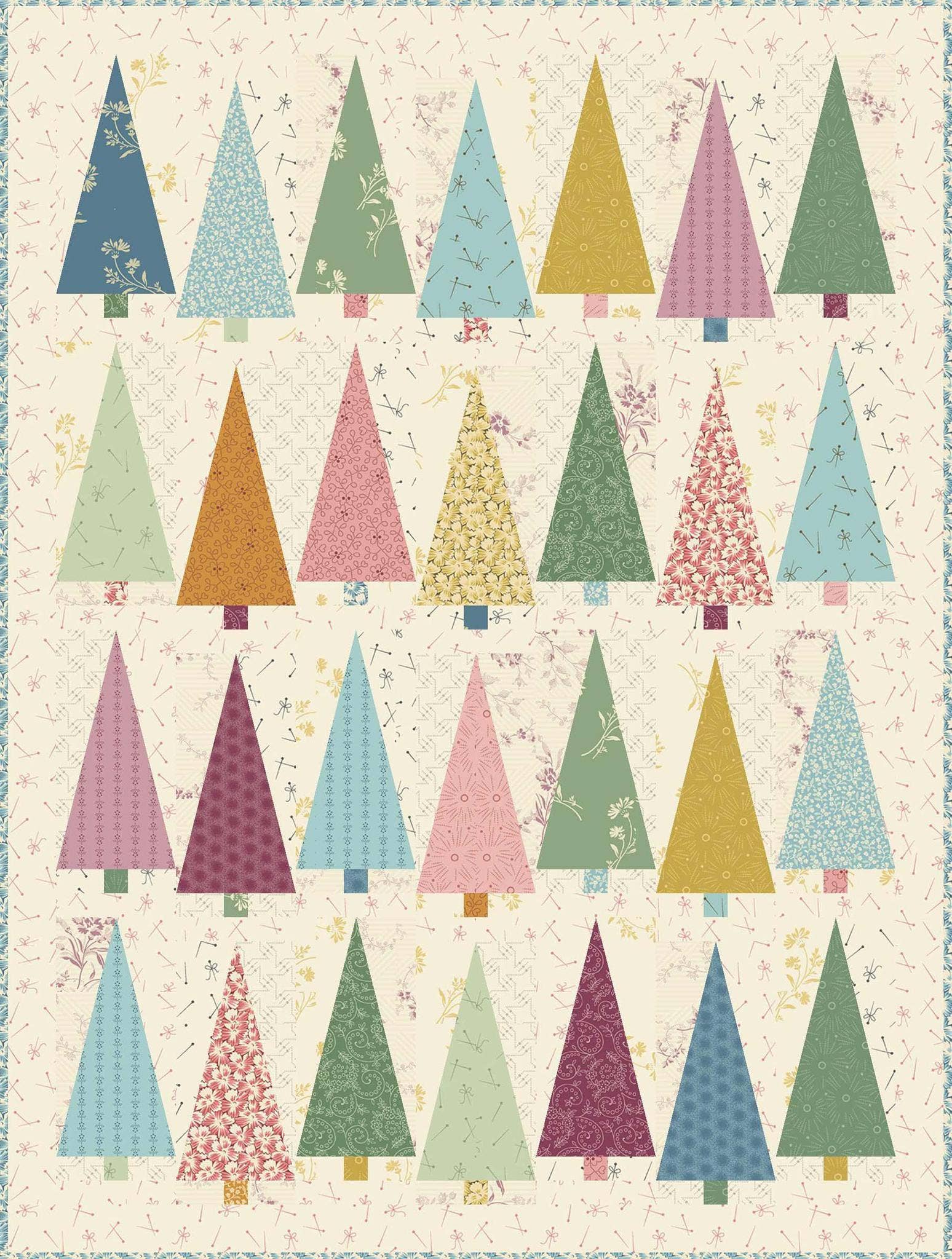 Traditional Quilt Pattern. Quilt Size is 18¼" x 25½" Fabric Requirements Trees: 14- 5" squares in variety fabrics (I recommend using a Charm Pack) Background: 14- 5" squares in light fabrics Border and Sashing: 1/4 yard light fabric Binding: 1/4 yard fabric Backing: 2/3 yard fabric