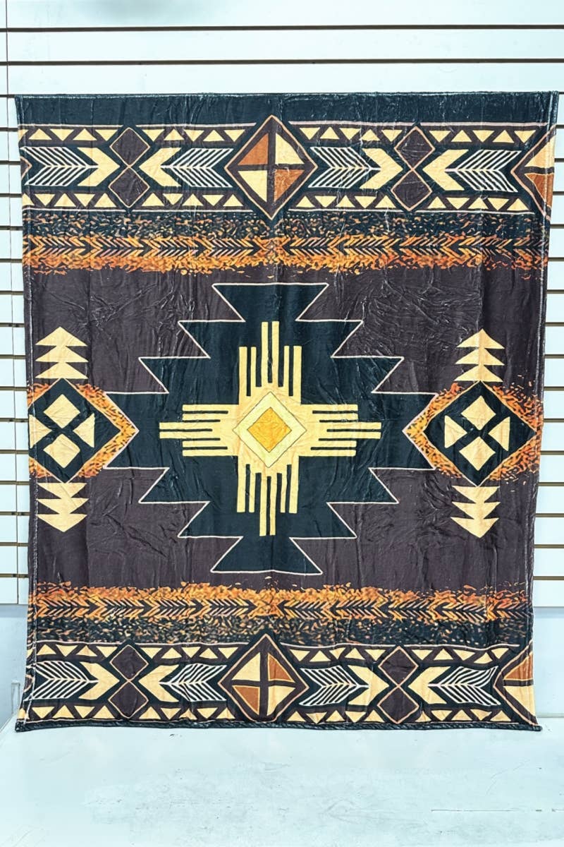 AZTEC western print flannel blanket Soft & Comfortable Fabric that’s perfect for snuggling on the couch, bed, or during travel. Size: 51" x 59"