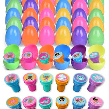 Create Your Own Fun unicorn World Jumbo 4 pack prefilled eggs in a colorful gift box. Each dinosaur deformation egg contains a foldable cute dino toy. Legs, head and tail are movable. Tiny toys can be easily fold to fit back into eggs after play. Cool collection for all fans of dinosaurs. Dinosaur Eggs for Kids Makes a perfect kids, boys and girls Christmas stocking stuffers, Christmas gifts, Easter basket stuffers, Easter gifts, dinosaur birthday party favors, birthday presents, school classroom rewards, carnival prizes, pinata filler, grab bag gifts, tooth fairy gifts. Includes 4 Pack jumbo dino eggs with dinausors toys Surprise for Kids Girls and Boys Age 3 4 5 6 7 8 9 10. Makes a great gift or birthday present for dinosaur lovers. Easter Basket Stuffers for Kids Let your Easter be full of surprises with these Easter Basket Stuffers. Easter baskets for kids include 4 plastic Toy-Filled Eggs. Children will enjoy hours of egg-hunting fun with these dinosaur surprise eggs.