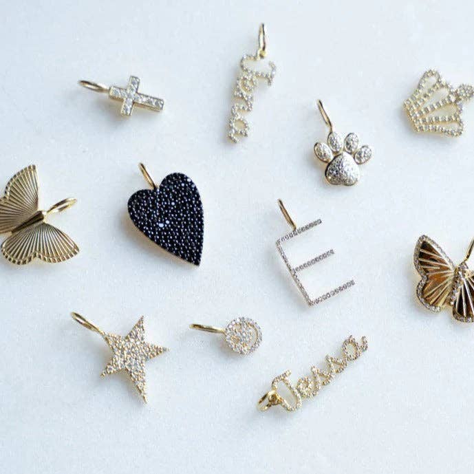 Choose your favorite chain and charms! Grab one for you and your bestie - these are sold as singles. When placed together they form a heart. So grab a left side charm and a right side charm for a perfect friendship charm necklace! The Half My Heart Charm is part of The Sis Kiss® Charm Bar. Charms and chains are sold separately. Please also purchase a chain for this pendant charm. Materials: .925 sterling silver 14k gold plated with crystals Size: 1/4" pendant
