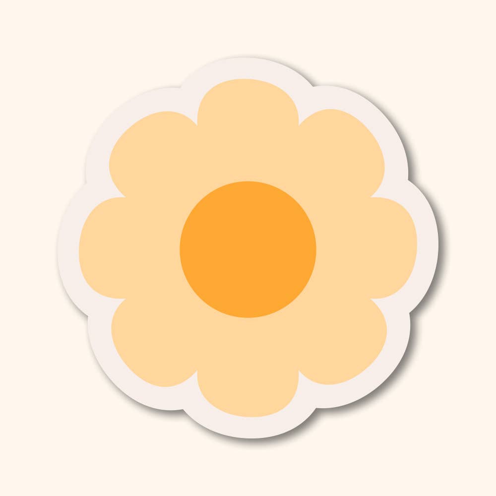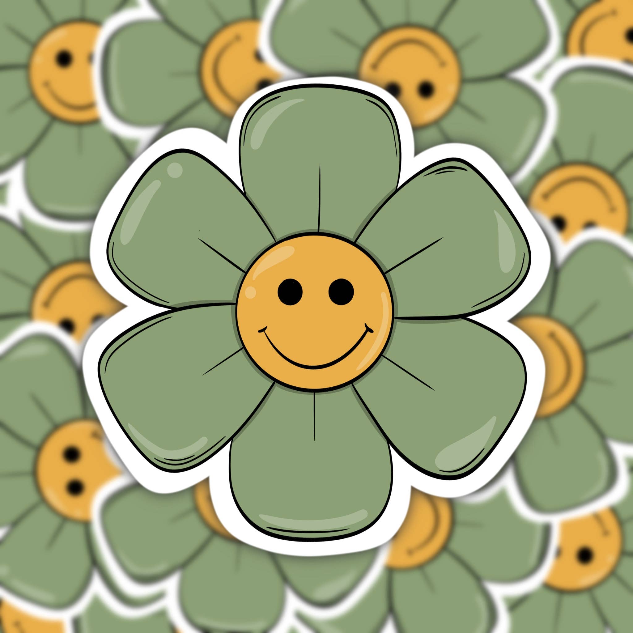 Green Flower Bumper Sticker Retro 70's style flower bumper sticker. Made from durable vinyl that will protect it from scratches, water and sunlight. Removable adhesive that is perfect for vehicles. Apply to clean and dry surface for best results. Dimensions: 4" x 4"