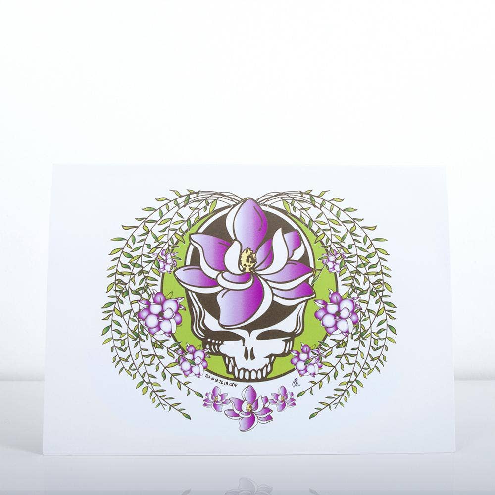 Spread a little love to your family and friends with our lovely Lotus Stealie design. Can be used for any occasion you can think of: birthday, anniversary, congratulations, thank you, just because I Love You cards. The possibilities are endless. Blank inside, small Little Hippie logo on back. Original artwork by Taylor Swope and Heather Caulfield. Printed in the USA. This card is sure to be one that will be treated like a piece of art! * 5" x 7" * Glossy outer finish * Sturdy construction * Vibrant print on white 14 pt C1S paper stock * Colored envelope(s) included * Officially licensed by Grateful Dead Productions