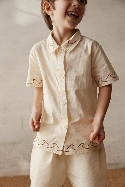 The Earl Short in Cream is a must-have throughout the seasons. These shorts are designed to hit just above the knees and have a comfortable elasticated waist. Team yours with the Earl Short Sleeve Shirt or Walter Tee. 100% Cotton Poplin Relaxed fit Elasticated waistband Side pockets Chocolate wave embroidery Cold machine wash / Do not tumble dry