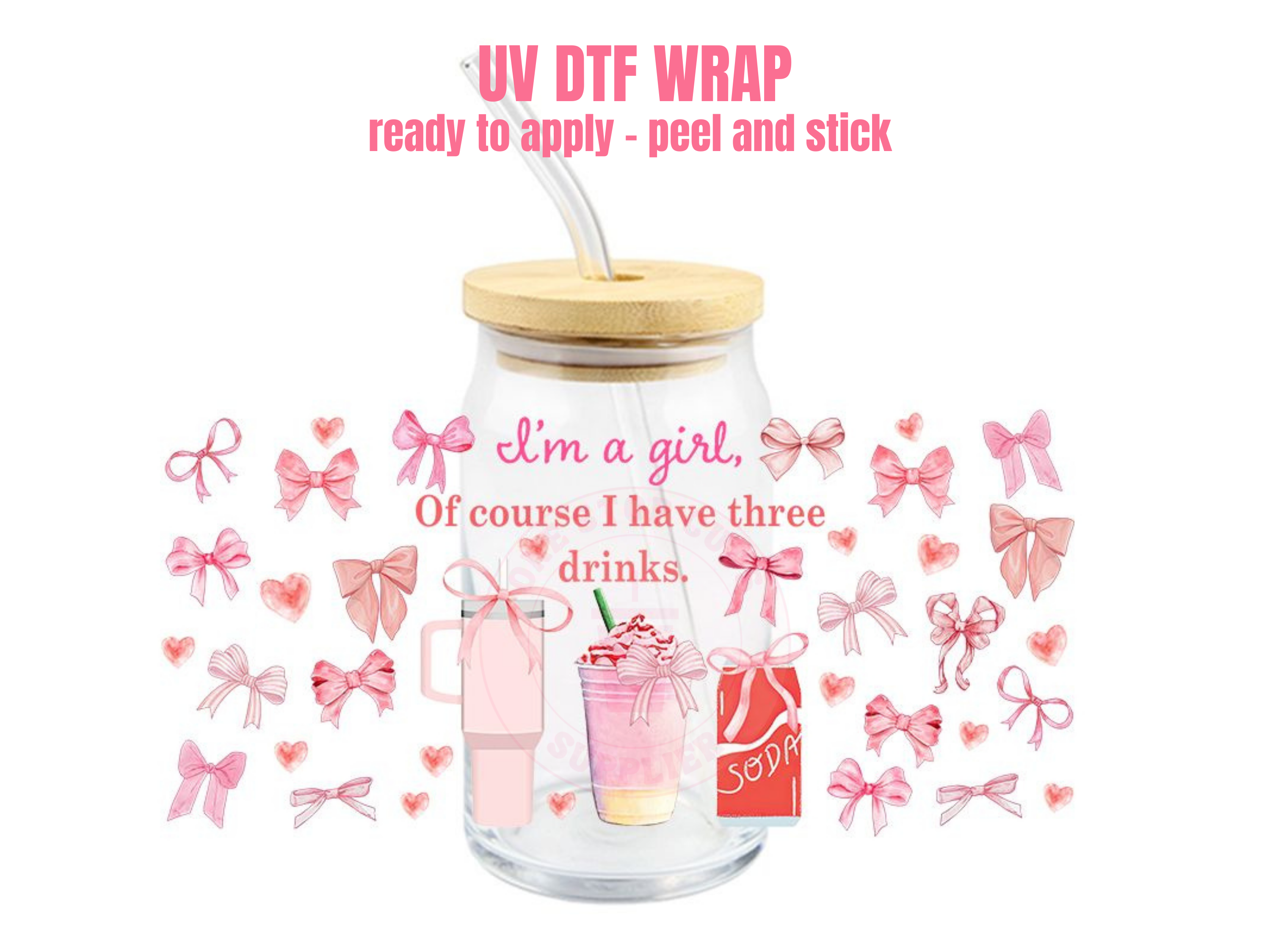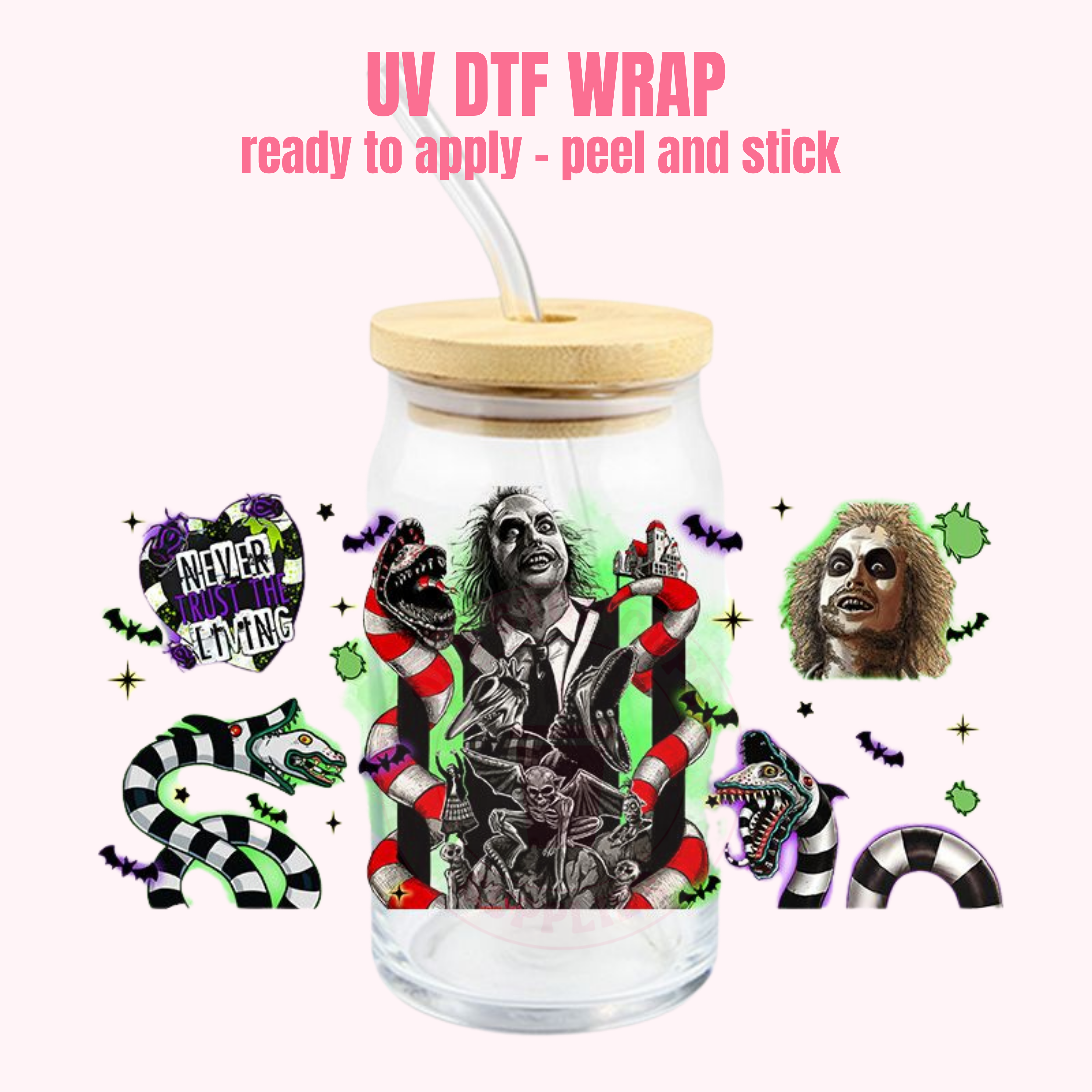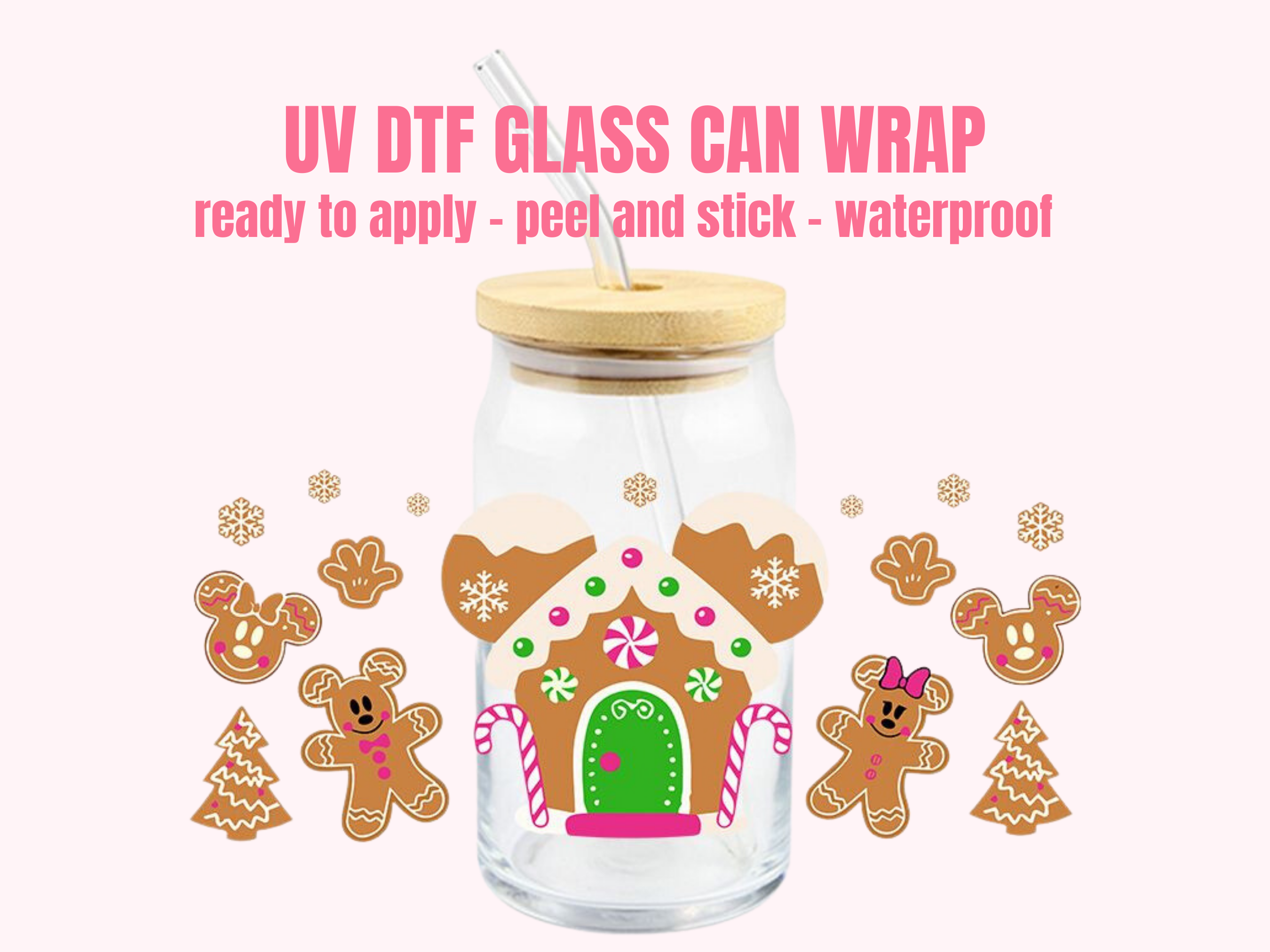 PRODUCT DETAILS This listing is for one (1) UV DTF adhesive cup wrap for a 16oz Glass Cup size. Size of transfer wrap: 9" x 4 " Glass cup NOT included.