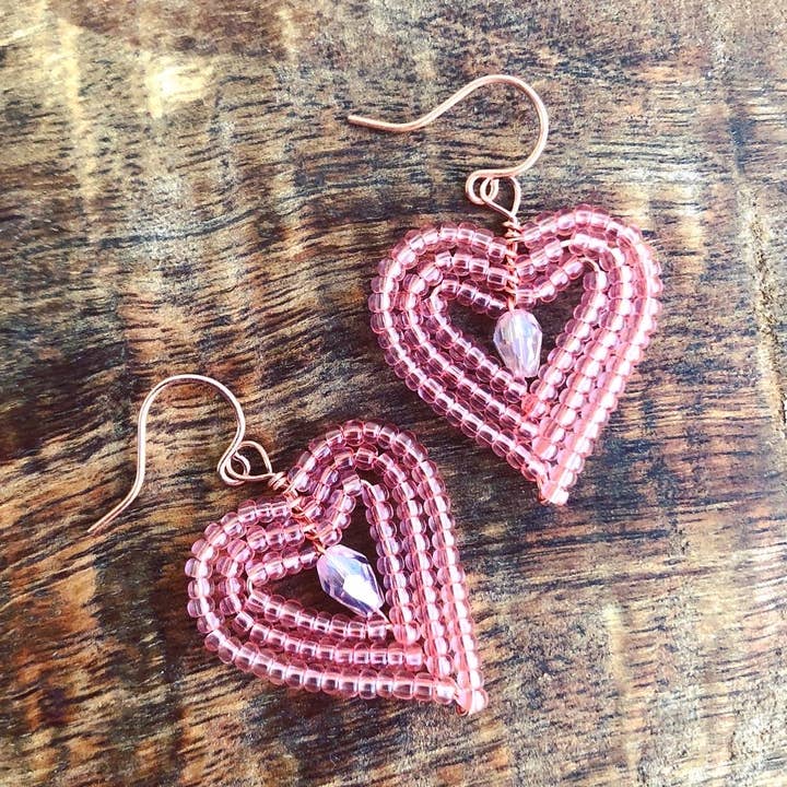 Earrings for Frida Kahlo lovers and those who want to honor Dia de Los Muertos and Mexican cultures all year long! These unique pairs of beaded earrings are made from an intricate wire-wrapping beadwork technique, using custom mixes of teeny tiny seed beads, a skull bead center, and adorned with a mulberry paper rose “hat”. Set on hypoallergenic french hook earwires. Measures 1 1/2 inch wide and 2 inch tall. #DayOfTheDead #MexicanEarrings #LatinaJewelry #FridaKahloEarrings