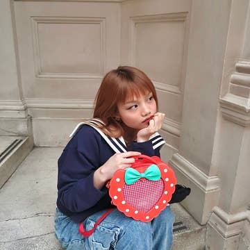 Feel cute and stylish with the Strawberry Heart Ita Bag! The perfect daily bag for your bright everyday look, it's designed to store your pins, makeup, school supplies, and more! Showcase your personality and style with this adorable bag! * can be used four different ways -- crossbody, over the shoulder, handbag, and backpack * comes with one pin insert -- pink gingham * dimensions are marked on the product photos