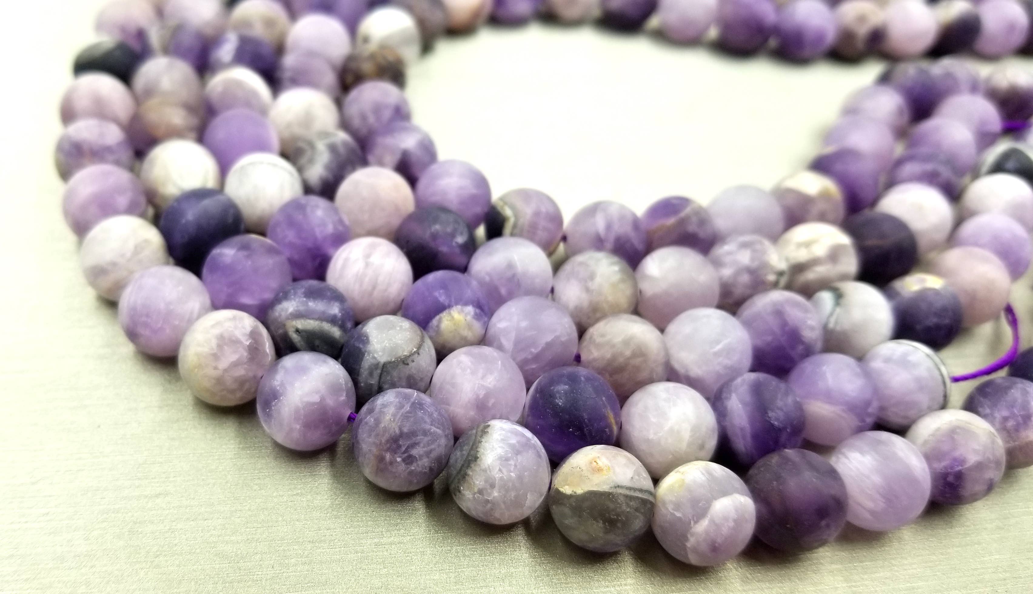 Listing price is for 1 strand Material: Natural Amethyst Shape: Round Style: Smooth Length: 15"-16" Size: Number of Beads/Strand: 6mm in diameter - about 63pcs/strand 8mm in diameter - about 50pcs/strand 10mm in diameter - about 40pcs/strand ------------------------------------------------------- Usage : For bracelet, necklace, or other crafts, jewelry makings *Ship from U.S.A in 1-2 business days. *Lead Free & Cadmium Free & Nickel Free* ***Please conv. me if you need quantity discount.