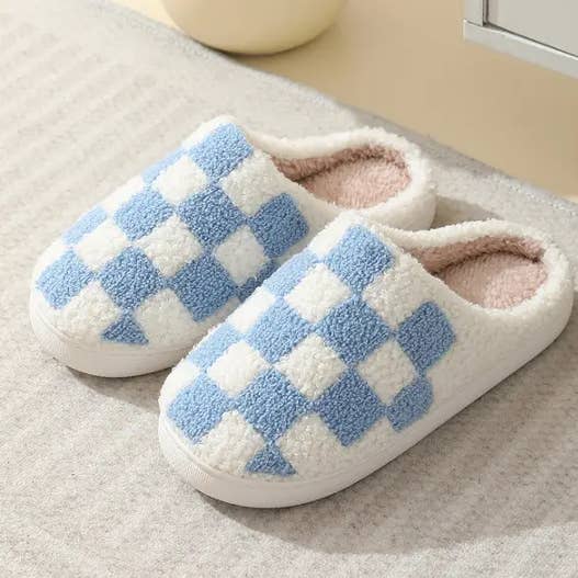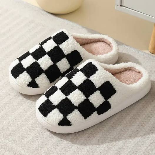 Checkered Fuzzy Warm Slippers – Cozy & Stylish_CWSHS0270