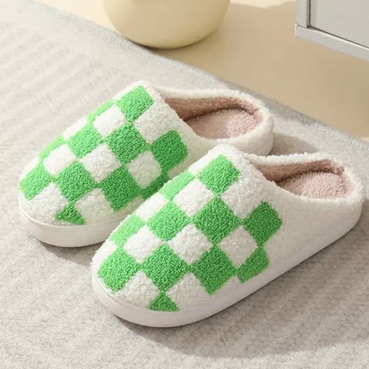 ▸SIZE:Pink,White,Green 6-7-8(for womens size) Grey,Coffee 8-9-10(for men size) ▸Material:100%PVC,100%Polyeste ▸Features: Non-slip, Insulating, Wear-resistant ▸Trendy Design: Checkered pattern ▸Midsole Material: EVA ▸Sole Thickness: 1.5cm (including) - 3.5cm (excluding) ⭐⭐☆☆☆ Basic quality: simple and functional for occasional use. ⏳ Usage Duration: With daily use, the product is expected to last approximately 1–2 months under normal conditions. Types Of Products That Will Be On The Shelves During This Period: Fuzzy slippers, Fluffy slippers, Cozy slippers, Soft indoor slippers, Women’s fuzzy slippers, Men’s fuzzy slippers, Memory foam slippers, Faux fur slippers, Open toe fuzzy slippers, Closed toe fuzzy slippers, Criss cross fuzzy slippers, Slip-on fuzzy slippers, Cute fuzzy slippers, Warm house slippers, Plush slippers, Winter slippers, Bedroom slippers, Furry slippers, Non-slip fuzzy slippers, Aesthetic slippers, Slippers with arch support.