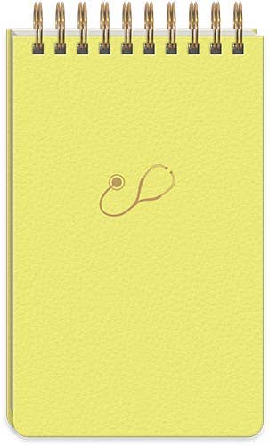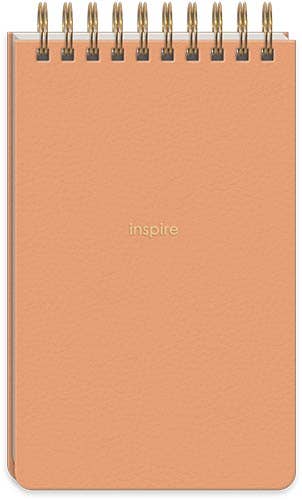 A sleek, softcover, spiral notepad to keep important notes close at hand. Vegan leather and gold foil details make it special. Vegan leather softcover spiral notepad Gold foil accents 3.75" x 6.625" 100 sheets