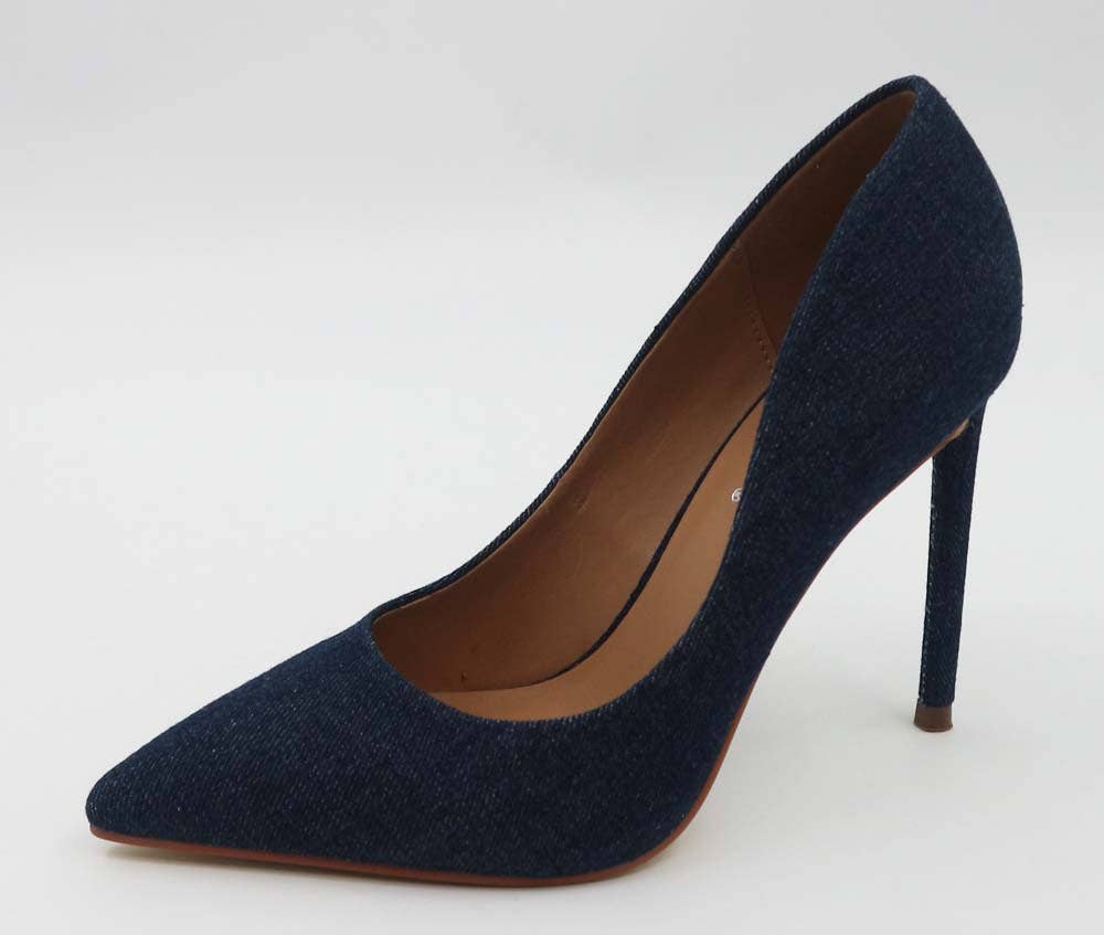 Anne Michelle NEROLI-18 Spike Studded Pointy Toe Denim Pumps