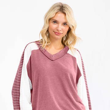 T9153 - DTY V-NECK 1POCKET DETAIL DOLMAN KNIT TOP