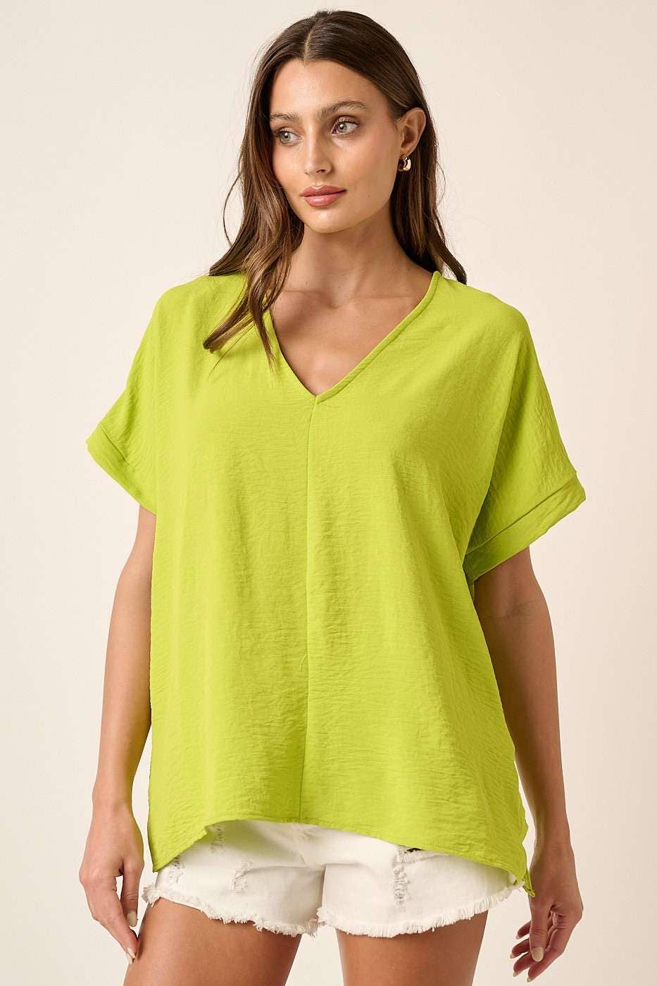 - DTY SOFT KNIT FABRIC - V-NECK - SINGLE CHEST POCKET - DOLMAN SHORT SLEEVE WITH ROLLED CUFF DETAIL - CURVED HEM - RELAXED FIT TEE PLUS SIZE: T9153PL MADE IN CHINA: ARMY, BLACK, BURGUNDY, IVORY, MOCHA, PALE BLUE 95% POLYESTER, 5%SPANDEX MADE IN USA: ALL OTHER COLORS 96% POLYESTER, 4%SPANDEX MODEL IS 5'9 AND WEARS SIZE SMALL # spring, summer, fall, winter, core, basic, basics, tshirt, t shirt, top, dolman sleeve, loose fit, vneck, casual, bestseller