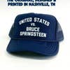 Add your city in the font/style pictured! (colors cannot be altered) We will send mockups for approval. Please send us a message prior to ordering if you have any questions! * high crown foam trucker with braided rope, adjustable snapback * imported hat printed by us in nashville, tn