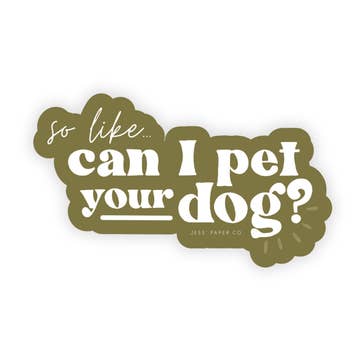 This olive green "Can I Pet Your Dog?" Sticker is made on thick, durable vinyl that is safe from scratches, water, & sunlight. Size: 2 x 3 inches