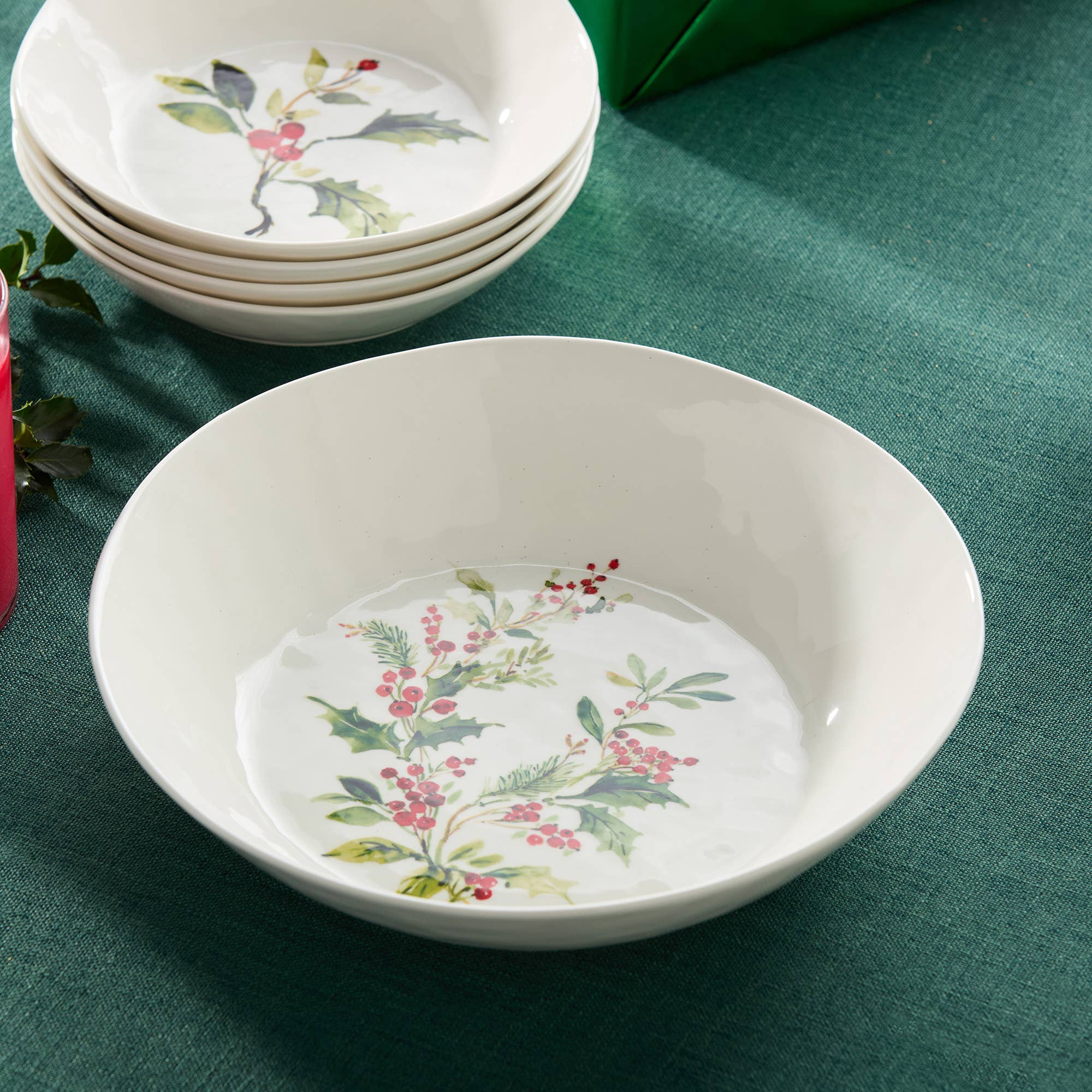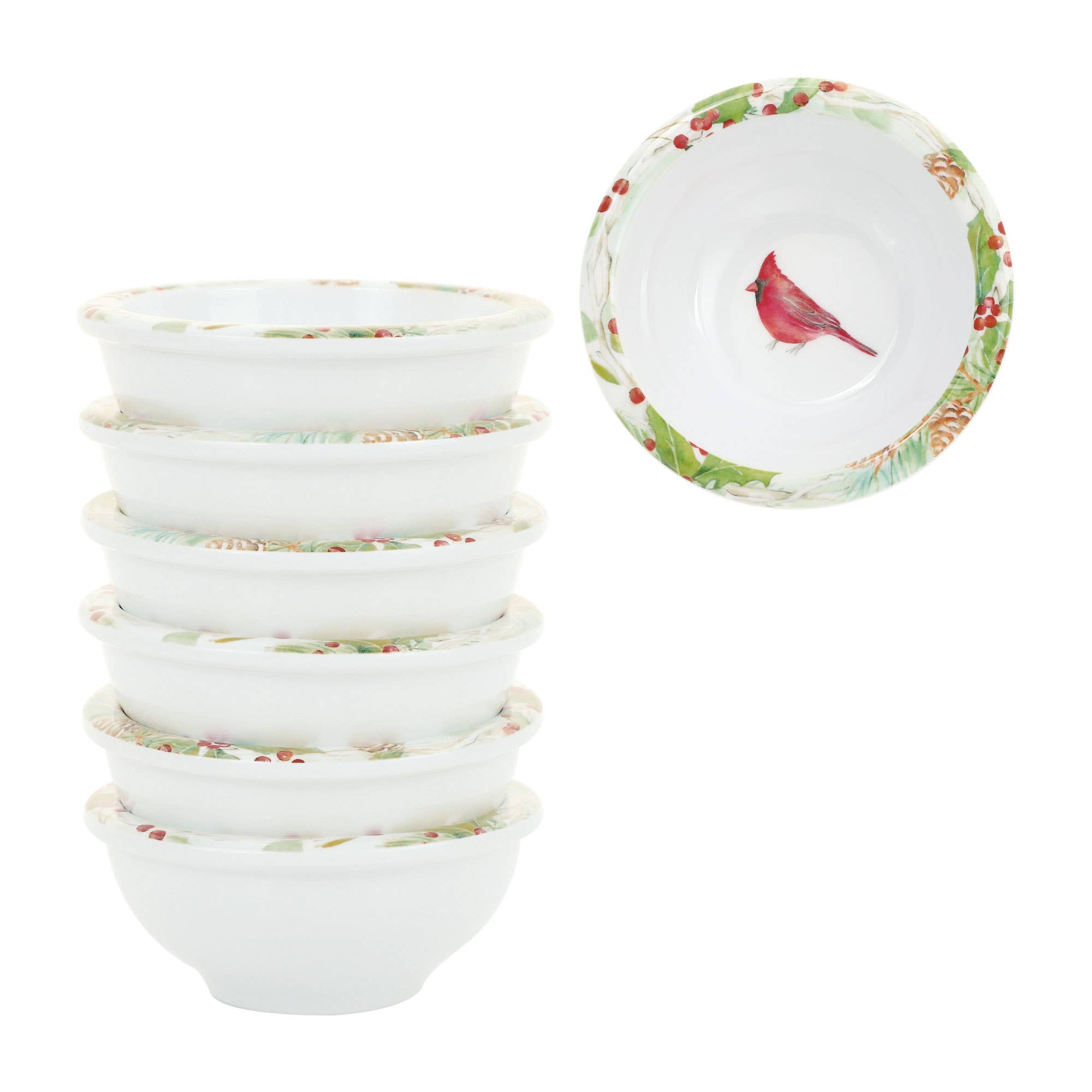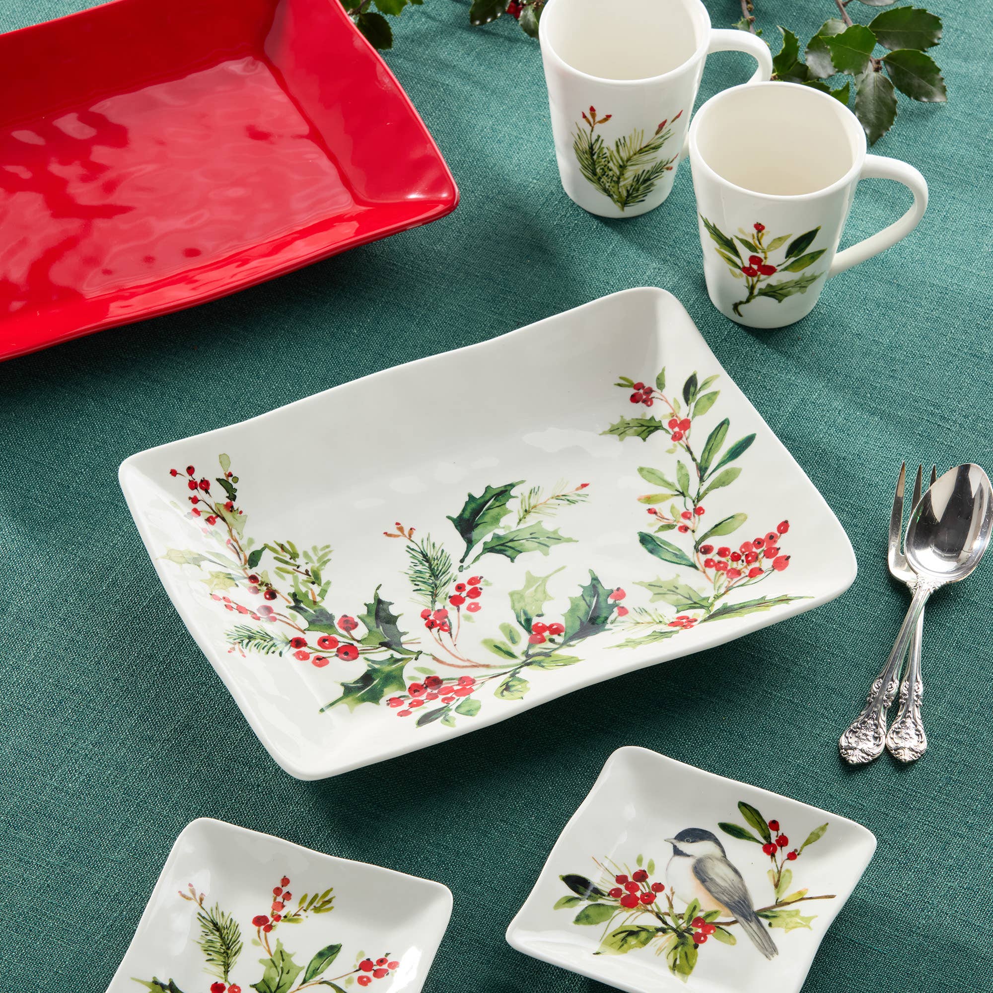 Add a festive touch to your holiday gatherings with the Holly and Vines Canape Plate Set, featuring four charming 6-inch plates, each adorned with unique seasonal designs. From vibrant red cardinals and chickadees perched amidst berries to pinecones and sprigs of holly, these plates celebrate the beauty of the winter season in vivid detail. Perfect for serving appetizers, desserts, or small bites, these plates bring elegance and cheer to any occasion. Crafted from high-quality ceramic, the plates are both lightweight and durable, ensuring they withstand regular use while maintaining their stunning look. The vibrant artwork is complemented by a smooth, glossy finish that enhances the intricate detailing and adds a touch of sophistication to your holiday table.