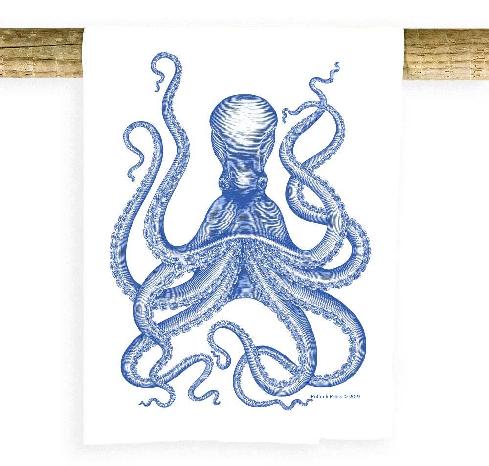 Coastal Octopus French Knot Kitchen Towel
