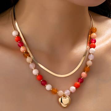 WHOLESALE N-4019 CITRINE, RUBELLITE QUARTZ, SUNSTONE NECKLACE