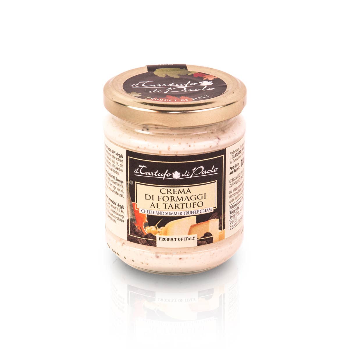Made in Italy Storage: Shelf-stable Ingredients: Basil 45%, extravergin olive oil 35%, summer truffle (tuber aestivum vitt) 10%, pine nuts, hazelnuts, almonds, parmesan cheese (milk, salt, rennet), pecorino cheese (milk, salt, rennet), salt, aroma. Weight: 58.97 kg (130 lb)