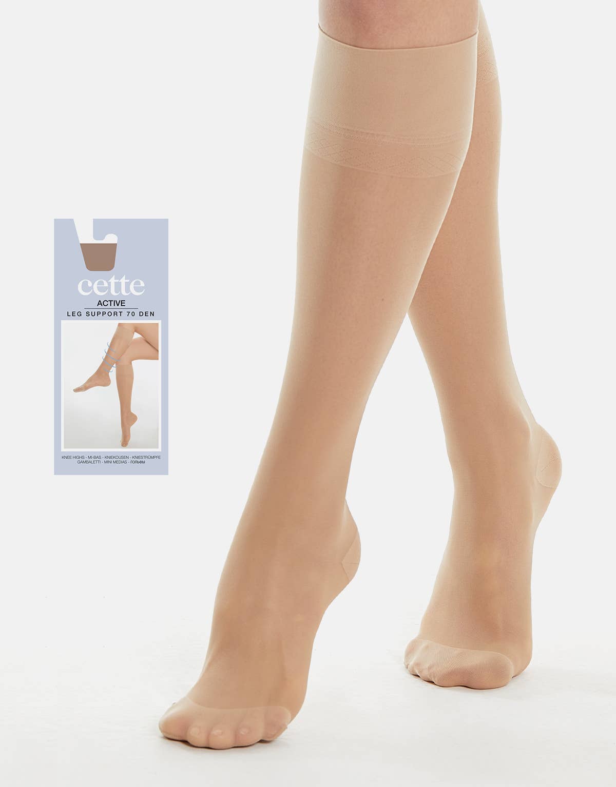 Support tights 70 DEN satin effect. Strong compression: 10 mm/Hg. Upward compression on the ankle that promotes a better blood circulation. These elastic stockings are designed to prevent swelling and relieve tired, heavy legs. Restful socks are recommended for those who spend long periods of time sitting or standing. Ideal for travelling, work or daily activities. Reinforced vamp, toe and heel for an excellent durability. Cotton gusset and flat seams for a maximum comfort. Note: these socks are not a medical device. Firm Support > 10 mm/Hg Reinforced pantie Reinforced toes Reinforced heel Cotton gusset Flat seams Satin finish Made in Italy Oekotex