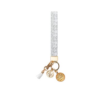 āLimited Winter Edition - Greenery & Gold Key Fob Wristlet featuring metallic gold berries and greenery fabric print from the Rifle Paper Fabric Holiday Classics Collection. Winter edition key fobs also features a gold faux leather tassel. ā Key fob wristlets make the perfect gift for a friend or teacher, or just a little something for you to elevate your car key fob! Features: ⢠sturdy fabric and webbing strap ⢠wristlet strap measures 6" long and 1" wide ⢠gold hardware and key ring ⢠metallic gold faux leather mini tassel ⢠handmade in Champaign, Illinois ⢠gives back to help provide clean waterĀ and community health initiatives around the world.Ā Ā Each fob is handmade so please note that the portion of the fabric pattern varies for each product. Ā