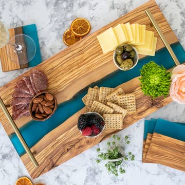 Stock up for Christmas with our best selling size. Use it as a charcuterie board or cutting board! These pieces blend gorgeous Acacia hardwood and an eco-friendly resin to create a one-of-a-kind piece of serveware for your home. These high quality charcuterie boards are all individually hand designed and come with finely rounded edges as well. Perfect for serving a group of 4-6 people. A thoughtful gift for that special someone or just for you to help with hosting those memorable get-togethers that will impress your guests! We can only imagine the beautiful spreads you’ll create with your new resin accented charcuterie board. Our cheese boards and serving trays now come in beautiful Lynn & Liana black gift boxes to make your gift presentation even more spectacular! These boards are not only functional, but also make for great home decor. We have colors for all seasons; spring, summer, winter and fall decor. Perfect for holiday decor! Size: 10"x20"x.75"