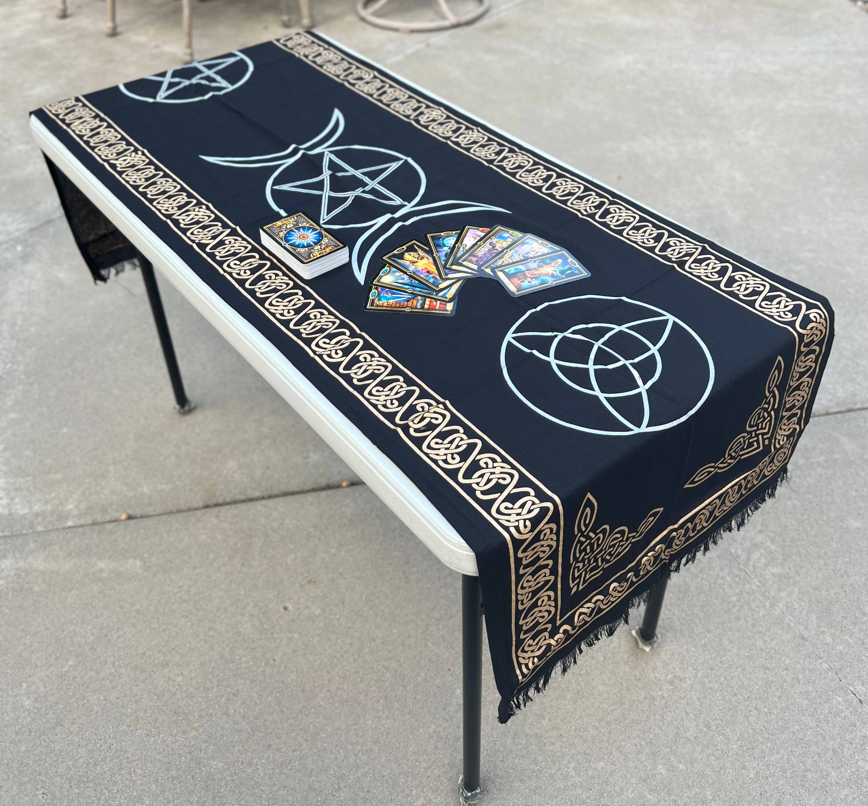 Triple Moon Long Altar Cloth Tarot Witchcraft Table Cloth