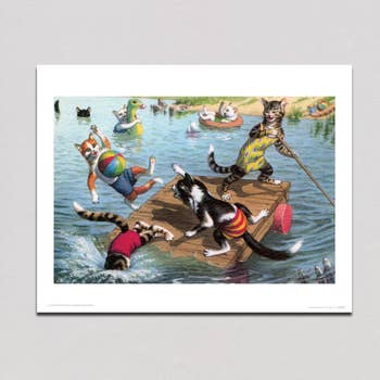 Get a load of these dogs in tubes. They are floating softly down the stream together, catching rays and eating treats. Everything is packed for a good little day on the water. The coolers are packed with ice cold bones and the dishes are full of chow. Beagle buddy was in charge of sunscreen, but forgot to grab any, so we may be observing some burned little doggies if they are out all day. Lots of opportunity to play catch and fetch though! These pups are going to enjoy the heck out of this day. - Signed and numbered limited edition print run of 250. - Size 11" x 14"