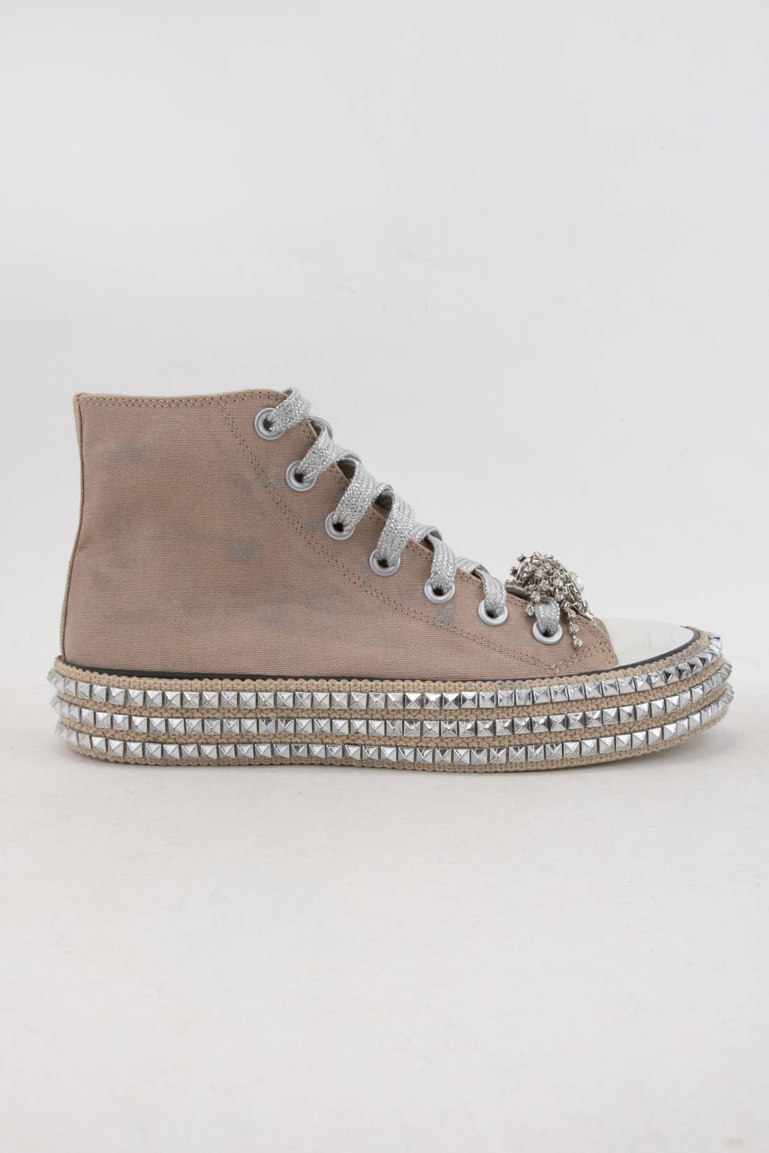 This polished pair features a laidback silhouette, embellished with elegant rhinestones and a braided platform sole. Take your everyday ensemble to the next level with Petra. PRODUCT DETAILS: Lace-up slip-on style with platform Genuine leather upper and insole PU lining Rubber outsole Diamond rhinestone eyelets Statement stone charms Logo engraved metal fastening with rhinestones Silver and gold-tone hardware 1.25" platform with rhinestone trim detail *Fits true to size Care instructions: Spot clean, air dry. Do not machine wash. *DOES NOT SHIP INTERNATIONALLY.