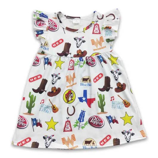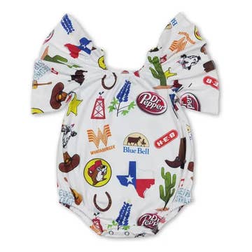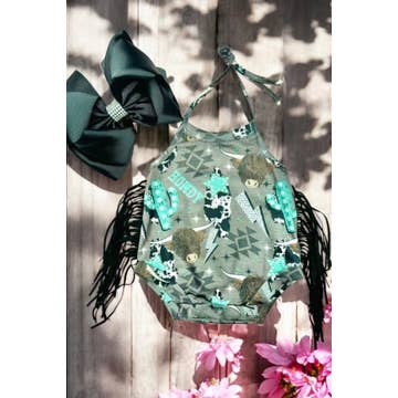 Flutter sleeves cactus bull skull baby girls romper