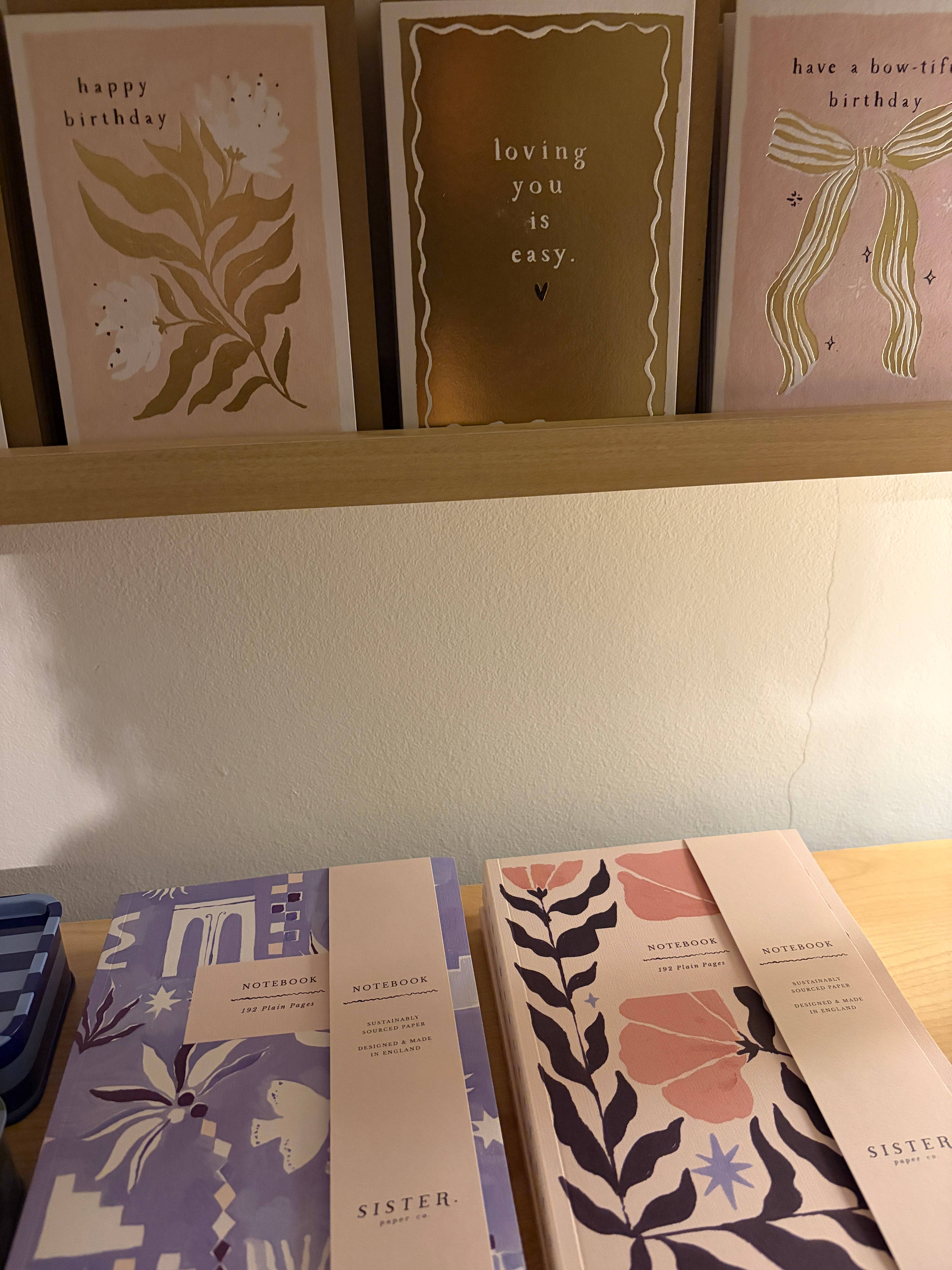 Capture moments of inspiration and encourage freedom of creativity in this gorgeous cherries plain page journal. The details: * 192 plain pages * 250gsm luxury, textured cover * 100gsm smooth, white inner pages * Perfect bound * Sustainably sourced papers * Artwork illustrated by hand in London * Made in the U.K. * A5 Size (WxHxD): 148 x 210 x 12mm / 5.8 x 8.2 x 0.5in The cover features vibrant artwork of juicy cherries scattered across a pastel pink and blue striped background, in a design that is bursting with nostalgia and y2k vibes. The artwork was originally hand-painted before being printed with vibrant inks onto luxury quality textured card. The cute stationery is filled with 192 plain pages of thick paper that allows you total freedom to let your creativity run wild, whether you want to write stories, make journal entries, sketch, doodle, or capture any kind of notetaking. The gorgeous, thick papers have been chosen for their minimal show-through, meaning that you can use all sorts of writing tools such as fountain pens, highlighters, brush pens and fineliners and make use of both sides of every page. Designed in London in the Sister Paper Co studio, the modern notebooks are crafted by a UK based, family-owned and -operated book binder. The materials used have been carefully selected to ensure they are sourced from certified sustainable forests. Bring the A5 size blank notebook with you as you explore your daily tasks, with the convenient size of the stationary ensuring you can capture every thought and idea when the magic strikes. Retail ready packaging: All pads, notebooks & journals are packaged with a recyclable paper belly band and barcode label. Upon request we can wrap items individually in a biodegradable, clear bag. Why it works in your store: Thoughtfully made with sustainability in mind, these notebooks are ideal for boutiques, lifestyle stores, museum gift shops, art materials stores, independent bookshops and stationery-led retailers looking for eco-conscious design-led stationery. These stunning cherries notebooks make a thoughtful gift for her, whether it's for a birthday, back to school, Mother's Day or just because. This luxury notebook can be sold year round and is perfect as back to school or office stationery. Packaged ready for retail these notebooks merchandise beautifully alongside gifts, stocking fillers / stocking stuffers, planners, jotter pads, journals, list pads, notepads, desk accessories, writing tools and diaries. Perfect for retailers seeking a curated stationery display, our notebooks are perfect to pair with our weekly planners, daily planners, and co-ordinating gift wrap sheets for a curated aesthetic in-store.
