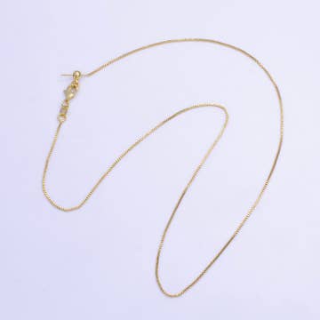 18k Gold Filled Adjustable Sizing Necklace. A box chain necklace adjustable to any size up to 18 inches or 26 inches. It is a fantastic solution if you want to be versatile with your pendant's placement. * Metal: 18k Gold Filled * 0.85 mm Diamond Cut Box Chain * Available in 18 and 26 inches long. * Hypoallergenic Jewelry * Water-resistant * Exclusive design * Handcrafted in Brazil