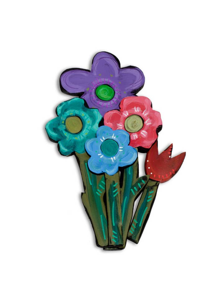 Hand painted wood tulip with a new modern feel. Hangs easily from a saw tooth hanger. Display inside or outside.