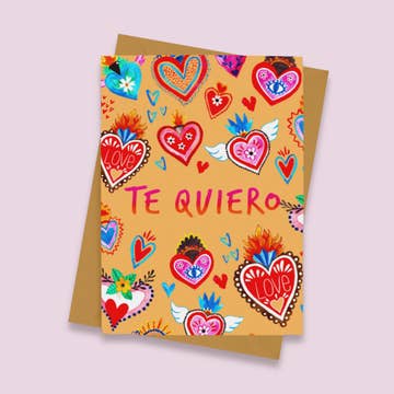 Hand painted on larger pieces of water color paper before the addition of screen printed text each card is left with it’s own composition. Each color way is limited to small editions to keep things fresh and exciting. Special note: The card you see in the picture is an example of the design vision with regards to colors and pattern, but will not reflect the exact card you receive. 4 × 6 - Envelope and proactive plastic sleeve included. Made in Petaluma, Ca USA