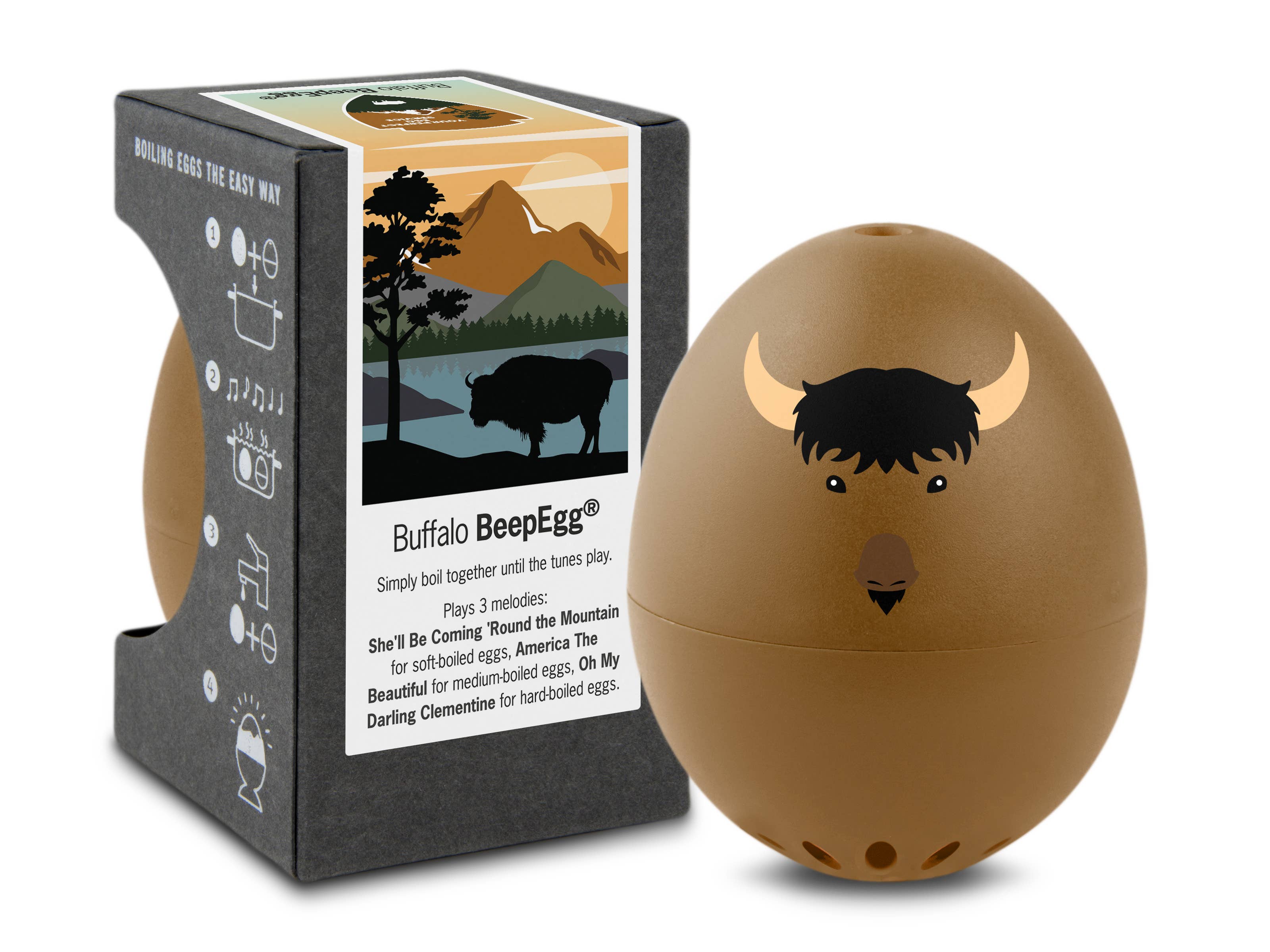This littel gadget really works. perfect soft, medium or hard boiled eggs. Just listen , enjoy some music while the eggs cook . Customer loved the chicken and the rooster designs