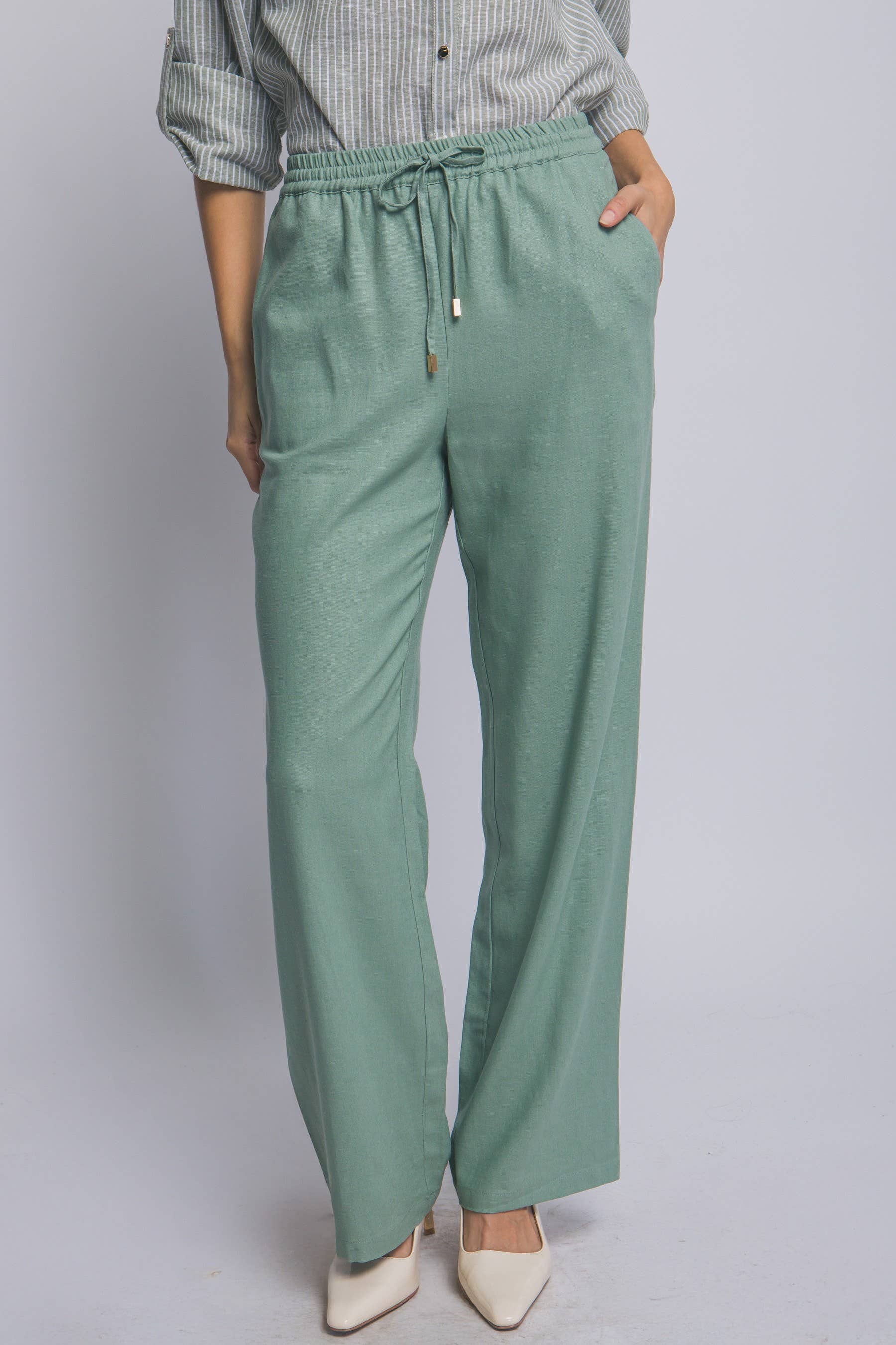 OLIVE OOTD VIBES BELTED TROUSERS for wholesale on Faire1